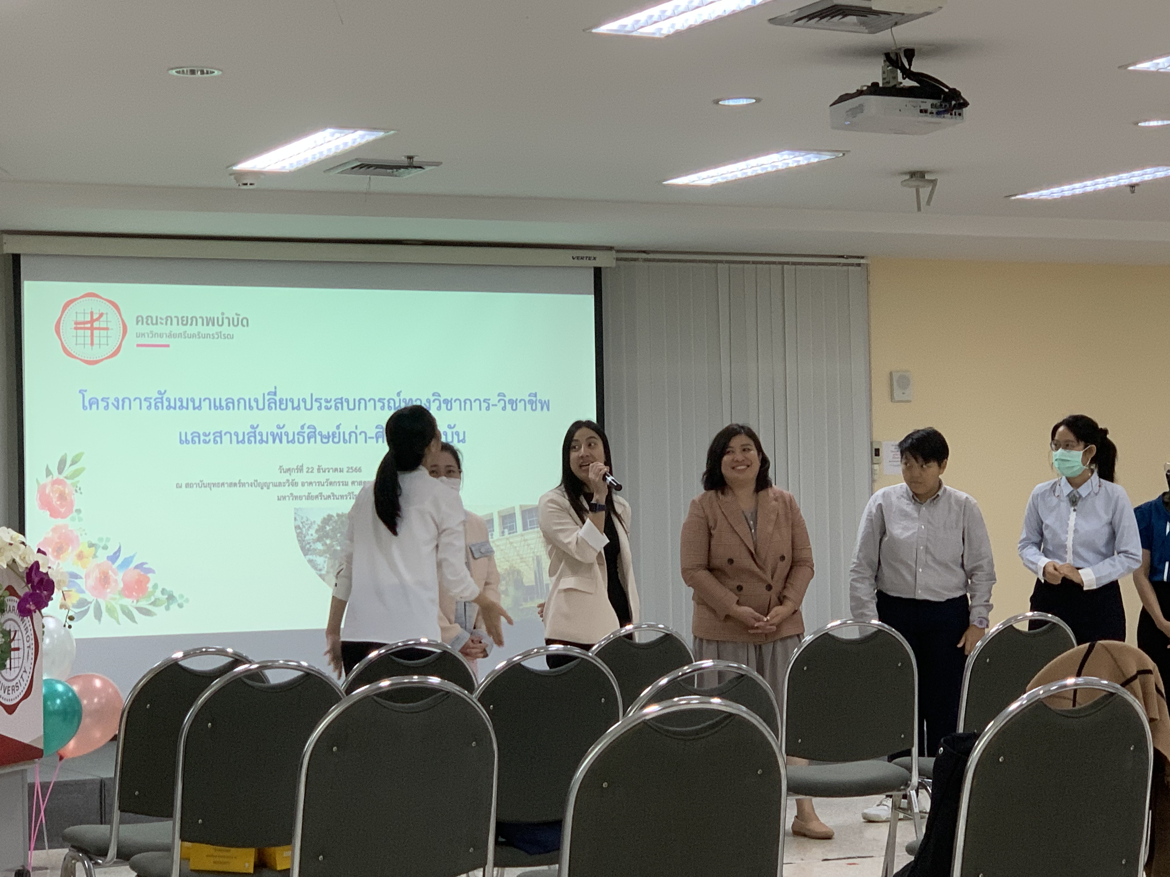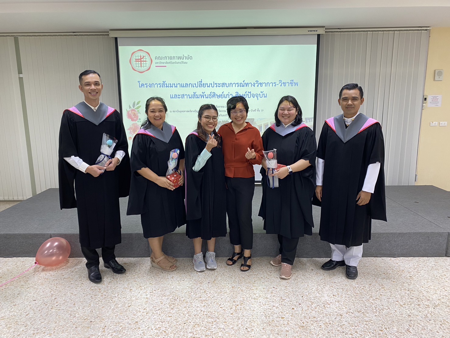 เมื่อวันที่ 22 ธันวาคมที่ผ่านมา หลักสูตรบัณฑิตศึกษา สาขาวิชากายภาพบำบัด คณะกายภาพบำบัด มศว ได้จัดโครงการ สัมมนาแลกเปลี่ยนประสบการณ์ทางวิชาการ-วิชาชีพ และสานสัมพันธ์ศิษย์เก่า-ศิษย์ปัจจุบัน ณ สถาบันยุทธศาสตร์ทางปัญญาและวิจัย อาคารนวัตกรรม ศาสตราจารย์ ดร.สาโรช บัวศรี ชั้น 19 มหาวิทยาลัยศรีนครินทรวิโรฒ โดยศิษย์เก่าระดับบัณฑิตศึกษาได้สะท้อนคิดเกี่ยวความสำเร็จในวิชาชีพและวิชาการที่ส่วนสำคัญหนึ่งมาจากความรู้และประสบการณ์จากการเรียนในหลักสูตรบัณฑิตศึกษา คณาจารย์และนิสิตปัจจุบันร่วมฉลองความสำเร็จและแสดงความยินดีให้กับมหาบัณฑิต