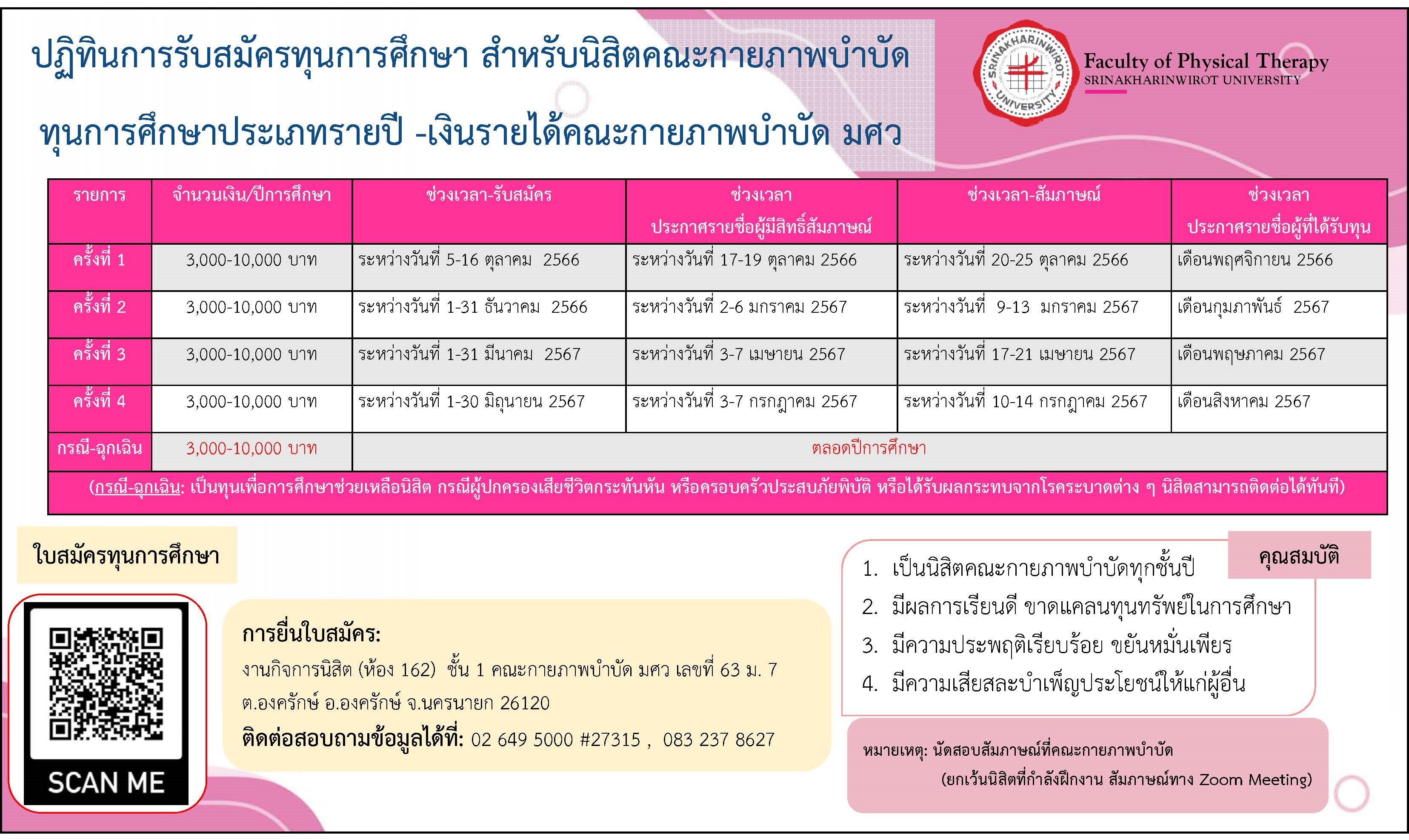 รับสมัครทุนการศึกษา ครั้งที่ 3 ของคณะกายภาพบำบัด