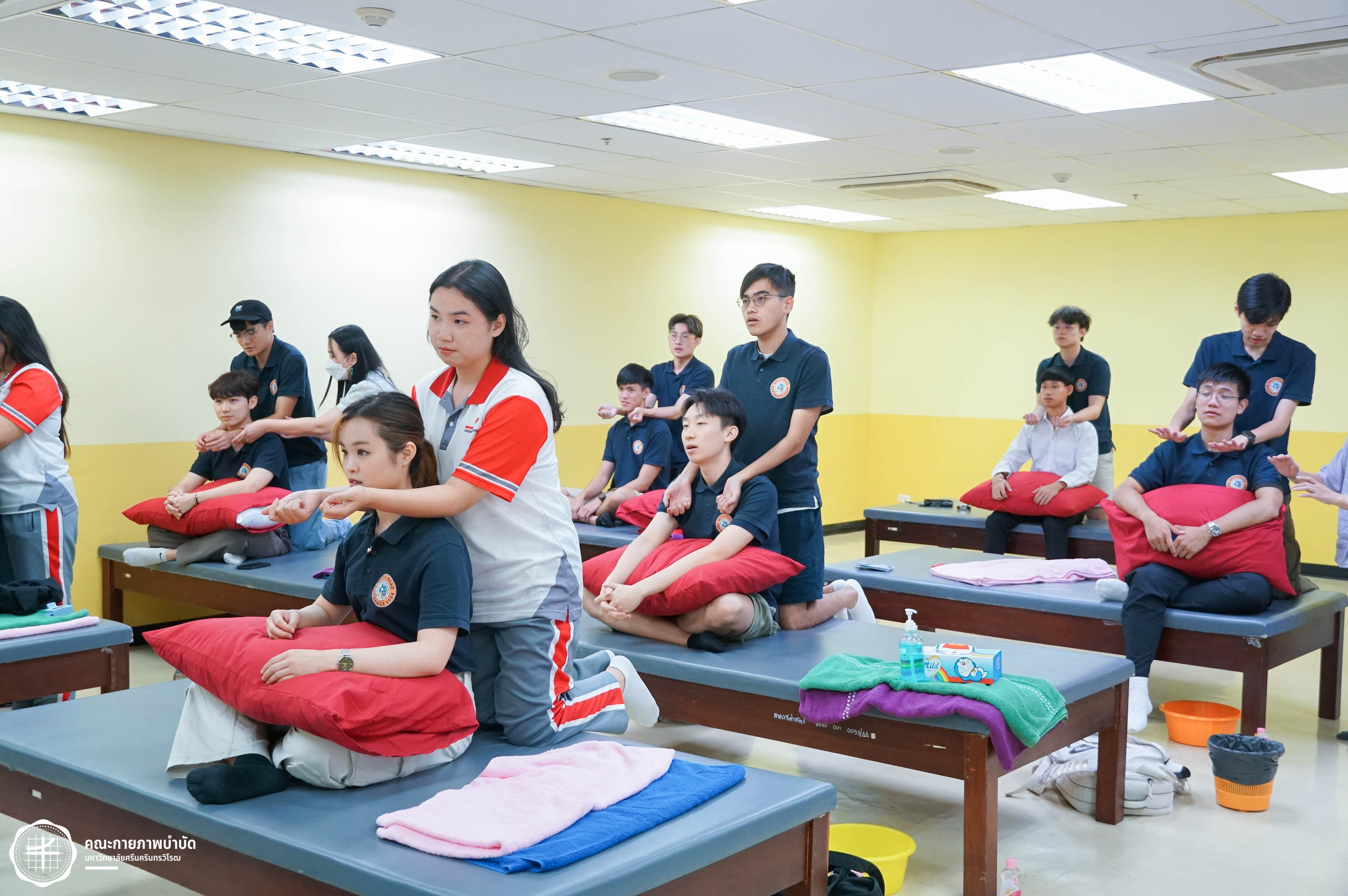 วันที่ 8-9 กรกฏาคม 2567 คณะกายภาพบำบัด มศว จัดโครงการ inbound-exchange : แลกเปลี่ยนเรียนรู้ด้านการเรียนการสอน และการฝึกปฏิบัติงานทางคลินิก โดยมีอาจารย์และนักศึกษาจาก The Hong Kong Polytechnic University เยี่ยมชมการเรียนการสอนของคณะกายภาพบำบัด และบรรยากาศโดยรอบมหาวิทยาลัย โดยทางคณะได้จัดกิจกรรมสานสัมพันธ์ระหว่างนิสิต และ กิจกรรม Workshop Basic Thai Massage