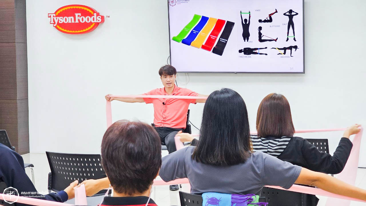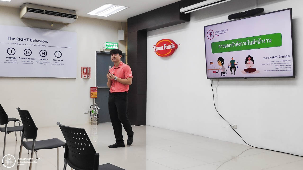 ทีมคณาจารย์กายภาพบำบัด คณะกายภาพบำบัด มหาวิทยาลัยศรีนครินทรวิโรฒ และบริษัท ไทสัน โพลทรี่ (ไทยแลนด์) จำกัด องครักษ์ นครนายก ได้ร่วมมือกันเพื่อสร้างเสริมสุขภาพให้กับทีมพนักงานบริษัท ไทสัน โพลทรี่