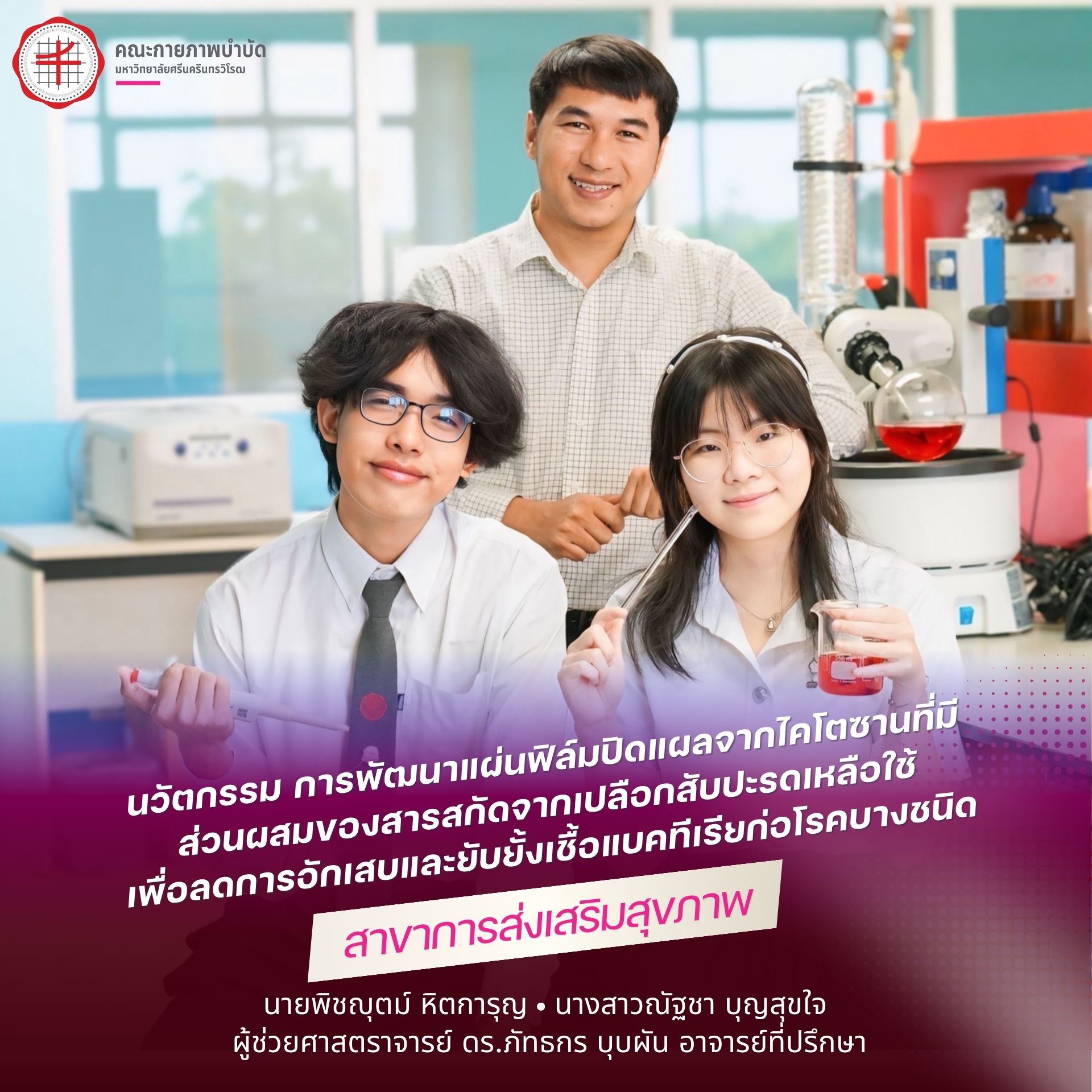 นวัตกรรม "การพัฒนาแผ่นฟิล์มปิดแผลจากไคโตซานที่มีส่วนผสมของสารสกัดจากเปลือกสับปะรดเหลือใช้เพื่อลดการอักเสบและยับยั้งเชื้อแบคทีเรียก่อโรคบางชนิด"