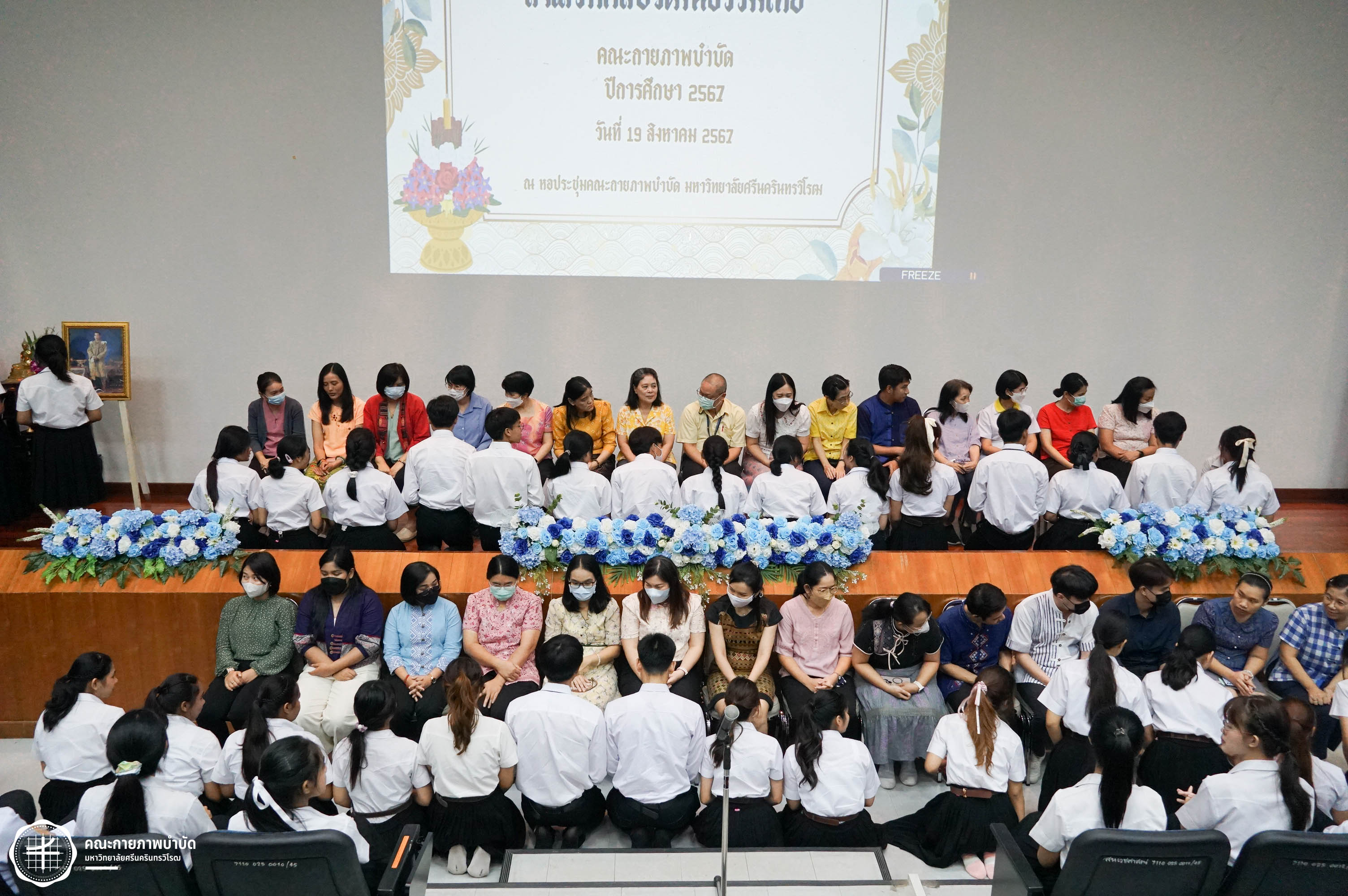 คณะกายภาพบำบัด มศว จัดโครงการโครงการส่งเสริมศิลปวัฒนธรรมไทย คณะกายภาพบำบัด โดยมีพิธีไหว้ครู มอบทุนการศึกษาและเกียรติบัตรแก่นิสิตที่มีผลการเรียนดีเด่น รายวิชาระบบร่างกายมนุษย์ และกิจกรรมทำนุบำรุงศิลปวัฒนธรรมไทย เมื่อวันจันทร์ที่ 19 สิงหาคม 2567 ณ ห้องประชุมใหญ่ คณะกายภาพบำบัด มศว เพื่อให้นิสิตแสดงความเคารพและระลึกถึงพระคุณครู อาจารย์ และมีส่วนร่วมในการอนุรักษ์วัฒนธรรม ประเพณีอันดีงามของไทย และเพื่อเสริมสร้างอัตลักษ์นิสิตด้านการอ่อนน้อมถ่อมตน มีสัมมาคาราวะ และทำนุบำรุงศิลปะวัฒนธรรมไทย