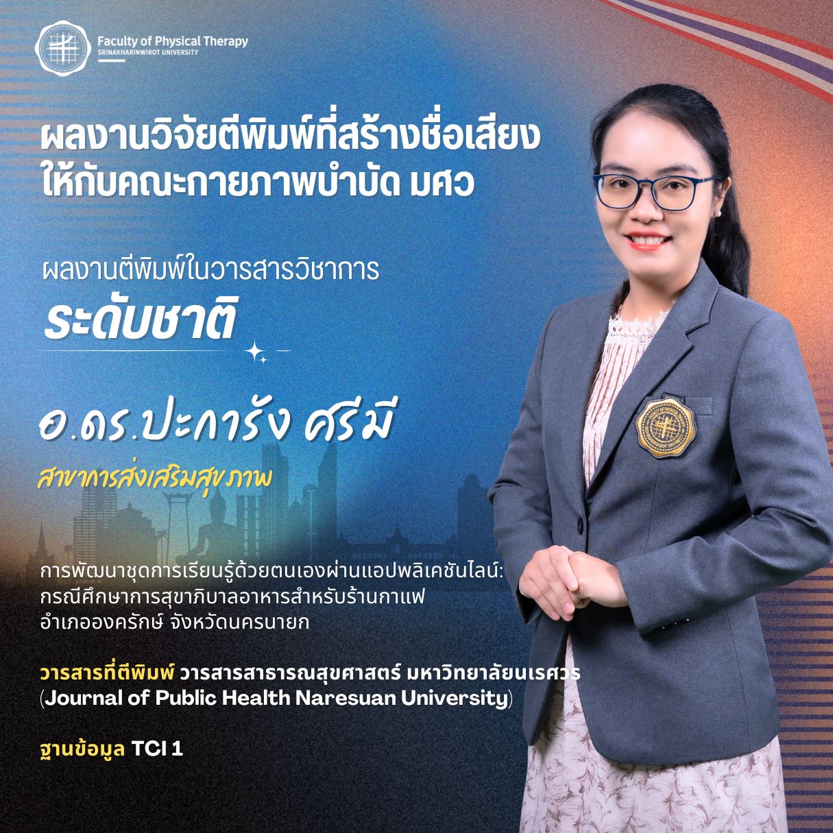 คณะกายภาพบำบัด มศว มอบรางวัลบุคลากรที่มีผลงานวิจัยตีพิมพ์ ในวารสารวิชาการระดับชาติ และนานาชาติ