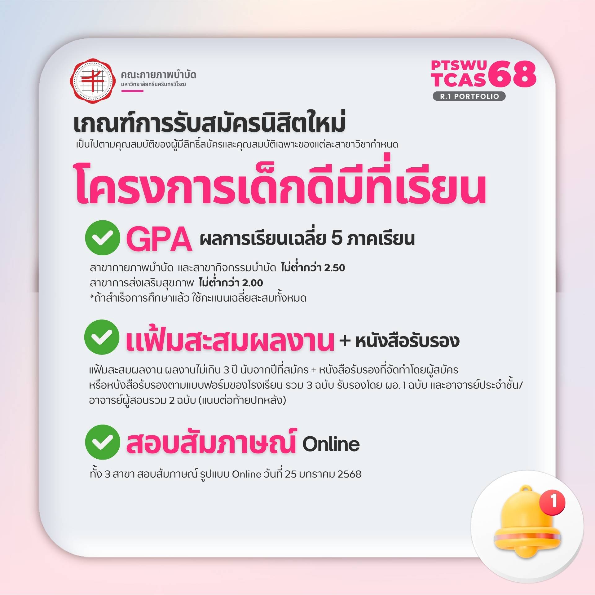 Click >>สมัคร ระบบรับสมัครจะเปิดวันที่ 12 พ.ย. – 9 ธ.ค. 2567