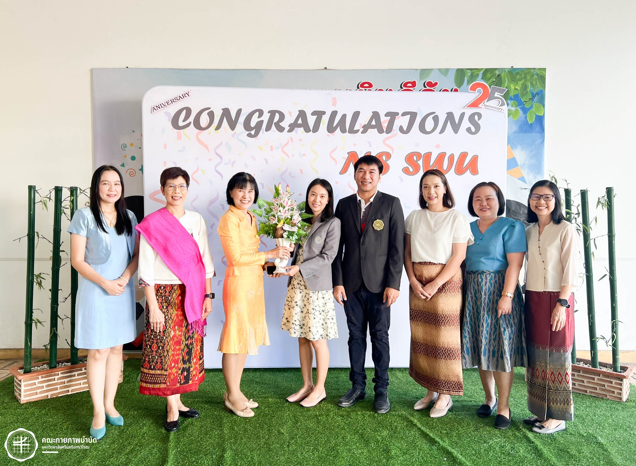 วันที่ 11 พฤศจิกายน 2567 ผศ.ดร.กสิมา กิติยานันท์ รองคณบดีฝ่ายวิชาการ และ ผศ.ดร.ภัทธกร บุบผัน หัวหน้าสาขาการส่งเสริมสุขภาพ เป็นตัวแทนคณบดีคณะกายภาพบำบัด เข้าร่วมแสดงความยินดีเนื่องในโอกาสวันครบรอบ 25 ปี วันสถาปนาคณะพยาบาลศาสตร์ มหาวิทยาลัยศรีนครินทรวิโรฒ องครักษ์