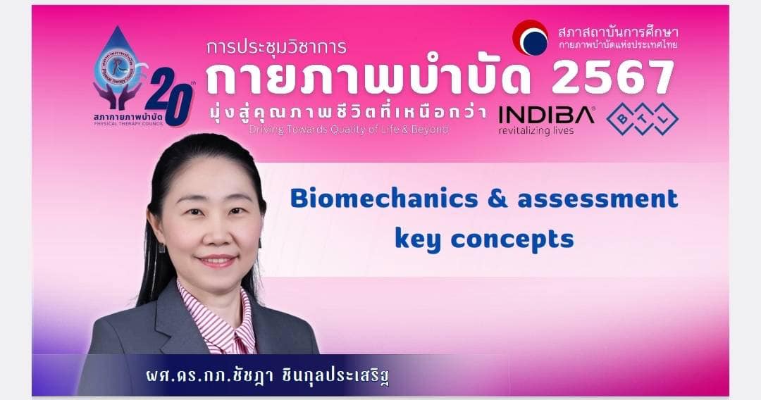 รศ.ดร.กานดา ชัยภิญโญ และ ผศ.ดร.ชัชฎา ชินกุลประเสริฐ อาจารย์สาขากายภาพบำบัด ได้รับเชิญจากสภากายภาพบำบัดให้เป็นวิทยากรในงานประชุมวิชาการสภากายภาพบำบัด 2567 (ในโอกาสครบรอบ 20 ปี สภากายภาพบำบัด) เมื่อวันที่ 22 พฤศจิกายน 2567 ในหัวข้อ Integrated Biomechanical approach to assessment and movement therapy for lower limbs