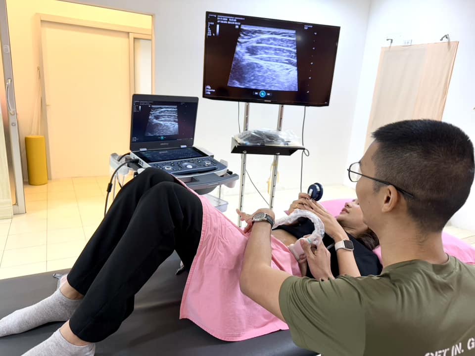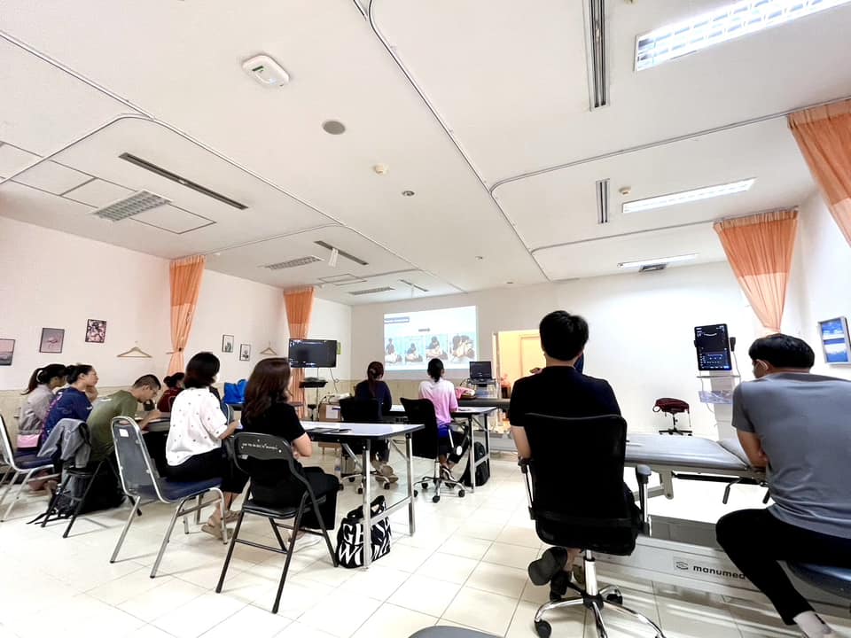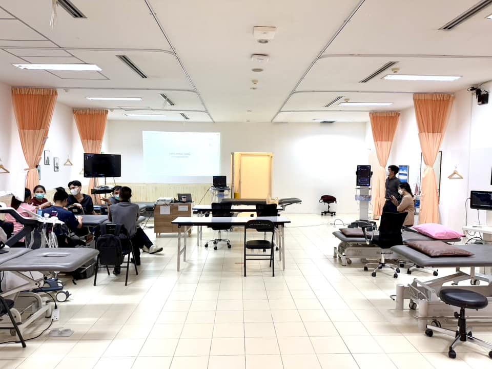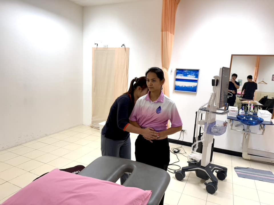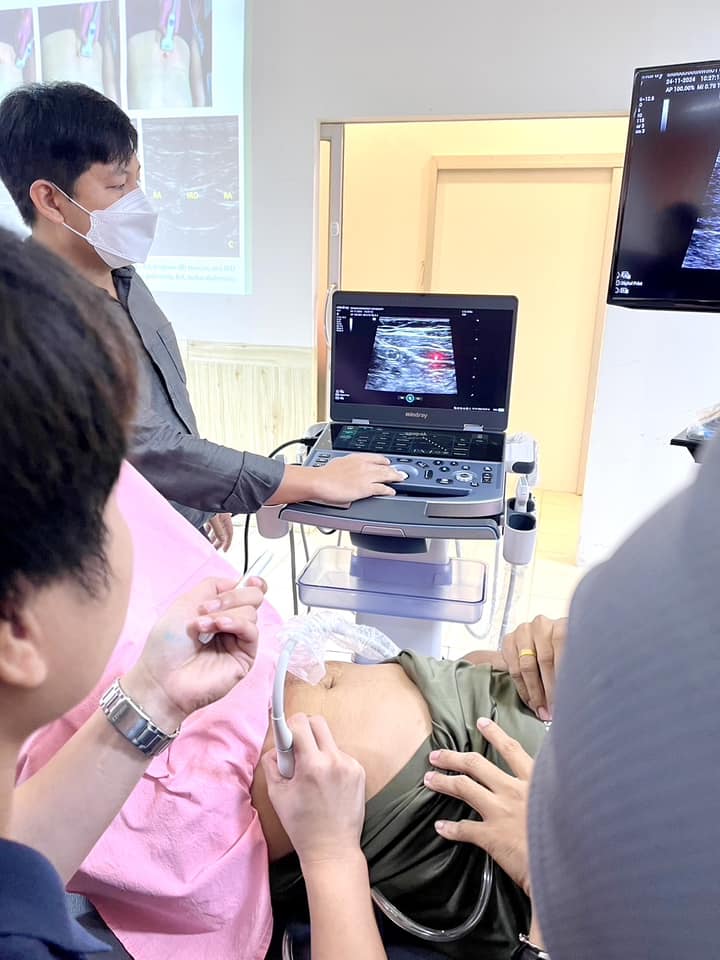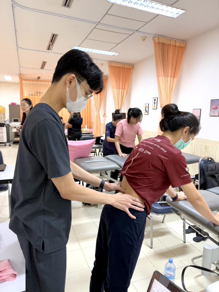 บรรยากาศการเรียนการสอนรายวิชา กภ 616 การรักษาด้วยมือและการเคลื่อนไหว (Manual and movement therapy) สำหรับนิสิตบัณฑิตศึกษา สาขากายภาพบำบัด นิสิตได้เรียนรู้ถึงการใช้ Ultrasound imaging ในส่วนของกล้ามเนื่อลำตัว และการใช้ redcord neurac method ในการประยุกต์การออกกำลังกายสำหรับฝึกความมั่นคงของลำตัว (trunk stabilization) เมื่อวันที่ 24 พฤศจิกายน 2567