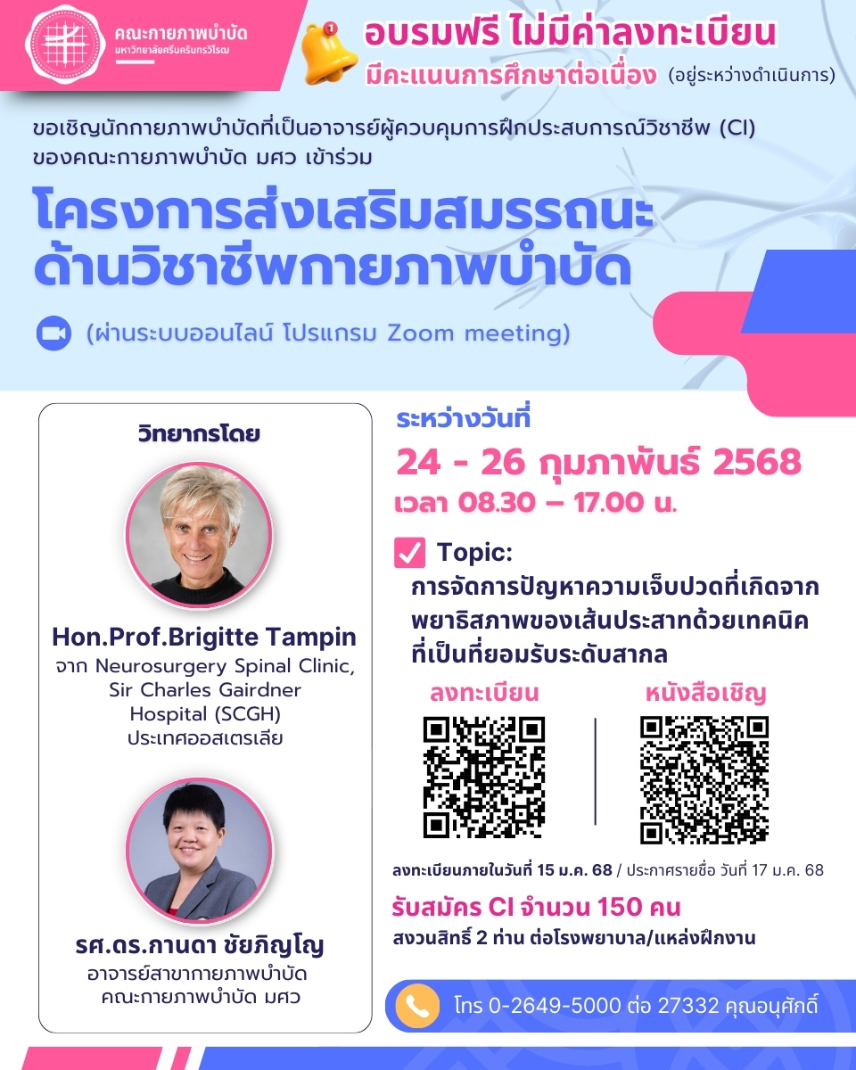 ขอเชิญอาจารย์พิเศษทางคลินิก (CI) ของคณะกายภาพบำบัด มศว