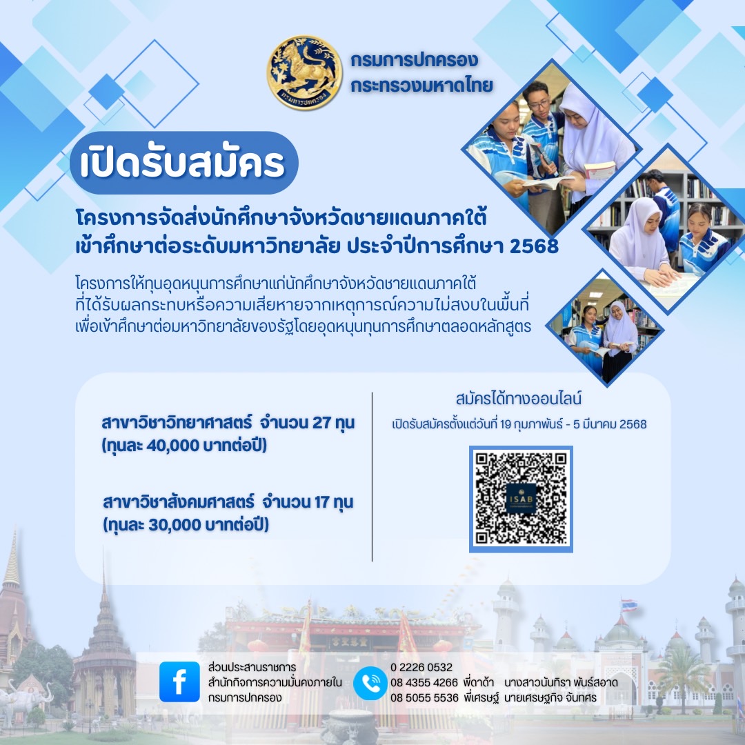 สำหรับโครงการจัดส่งนักศึกษาจังหวัดชายแดนภาคใต้เข้าศึกษาต่อมหาวิทยาลัย