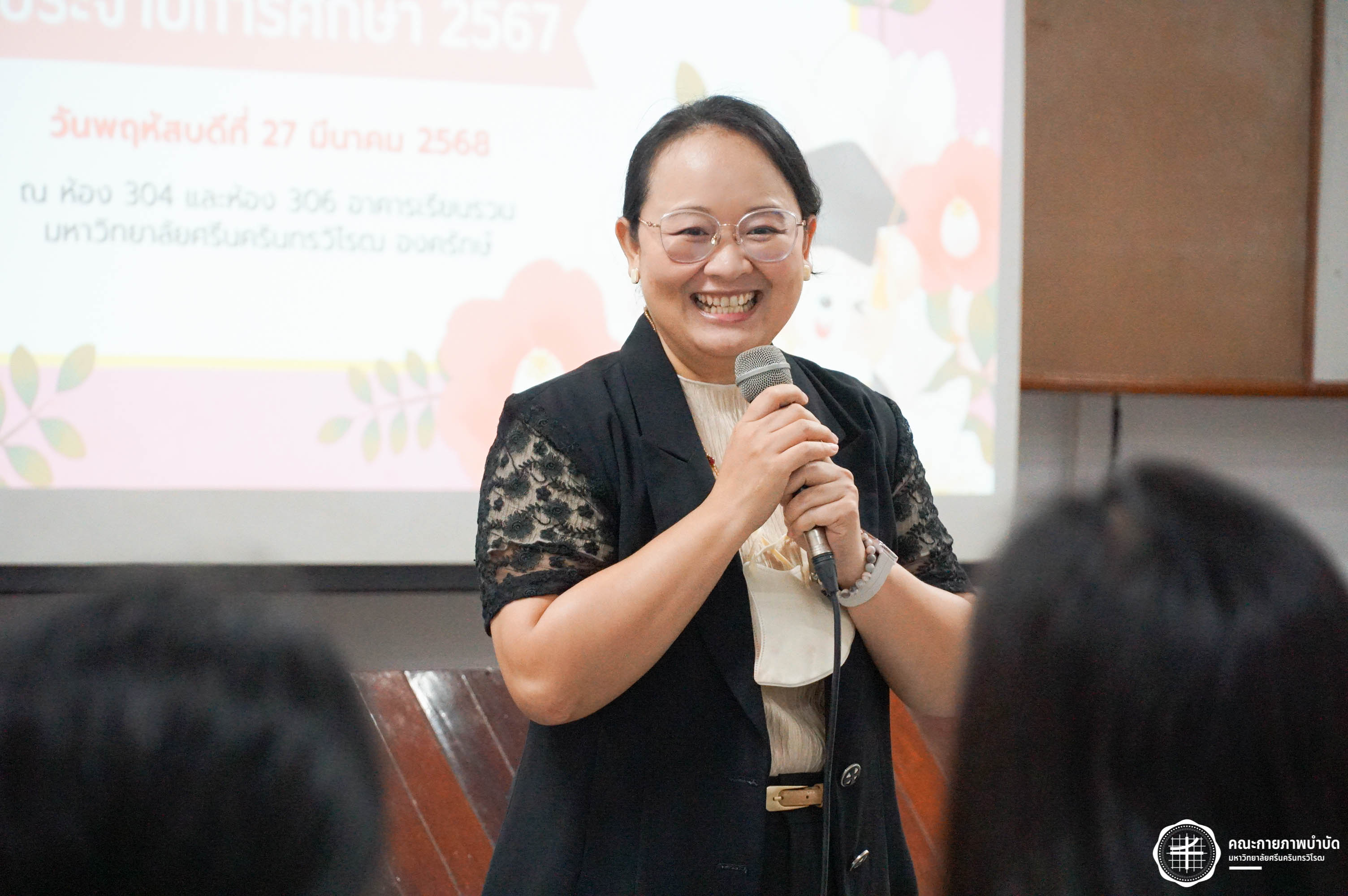 เมื่อวันพฤหัสบดีที่ 27 มีนาคม 2568 คณะกายภาพบำบัด มศว จัดโครงการปัจฉิมนิเทศ ประจำปีการศึกษา 2567 ให้กับนิสิตชั้นปีที่ 4 โดยมีกิจกรรมสานสัมพันธ์ระหว่างอาจารย์และนิสิต กิจกรรมการให้โอวาทและคำอวยพรจากคณาจารย์ในคณะ และกิจกรรมการบรรยายหัวข้อ "การพัฒนาบุคลิกภาพและการเตรียมความพร้อมในการสมัครงาน" วิทยากรโดย คุณอิงฟ้า ดอนเหลื่อม ผู้เชี่ยวชาญด้านบุคลิกภาพ โรงพยาบาลปิยะเวท