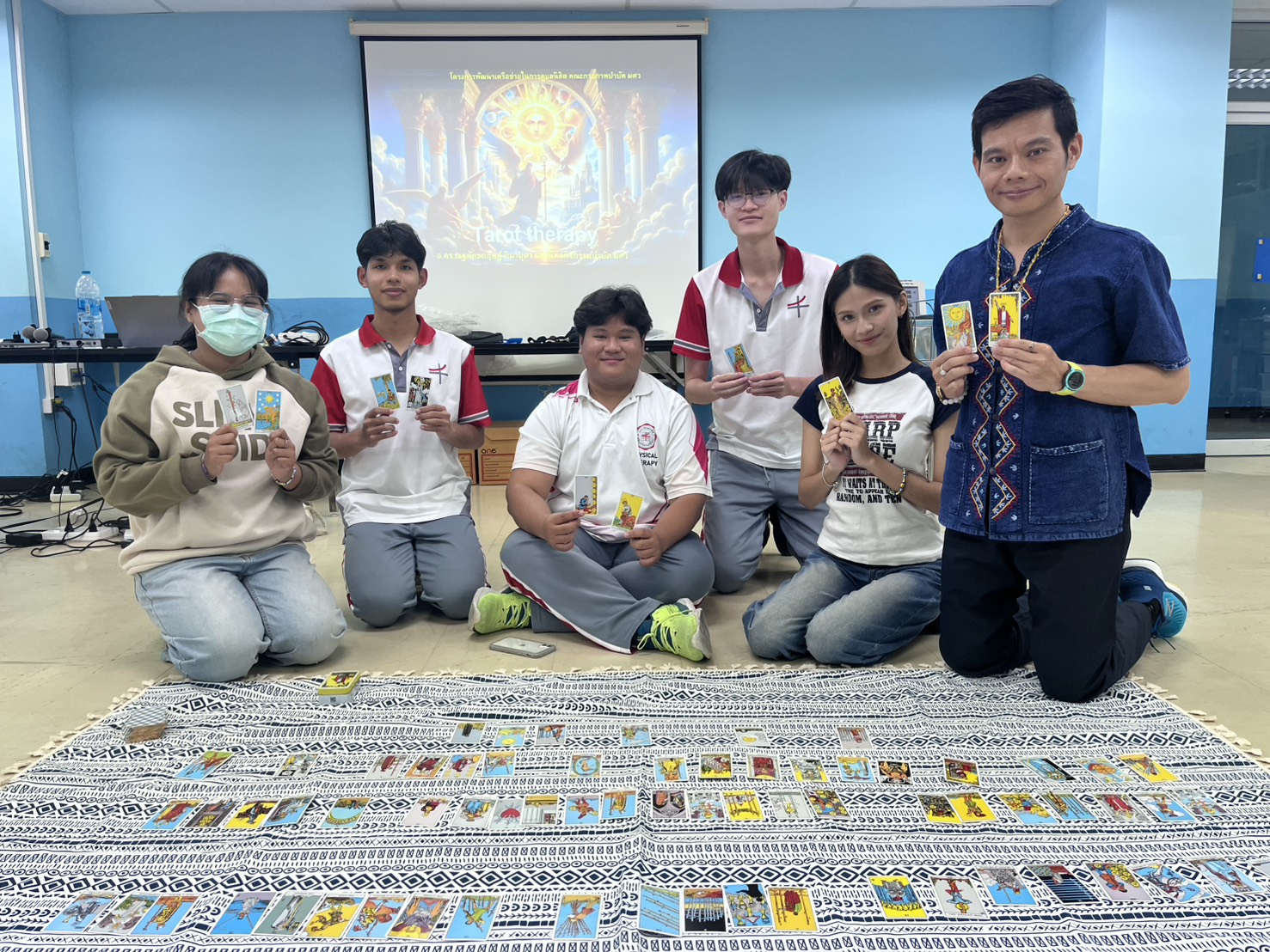 กิจกรรมที่ 2 กิจกรรมส่งเสริมสุขภาพใจ คลายความตึงเครียด มีกิจกรรม “เส้นสีแห่งอารมณ์” กิจกรรม “Tarot therapy ฮีลใจด้วยไพ่ทาโรต์” กิจกรรม “Mandara ศิปะภาวนาเพื่อใจสงบ” โดย อาจารย์ ดร.ณฐภัทชกฤษฎ์ ทิมาบุตร