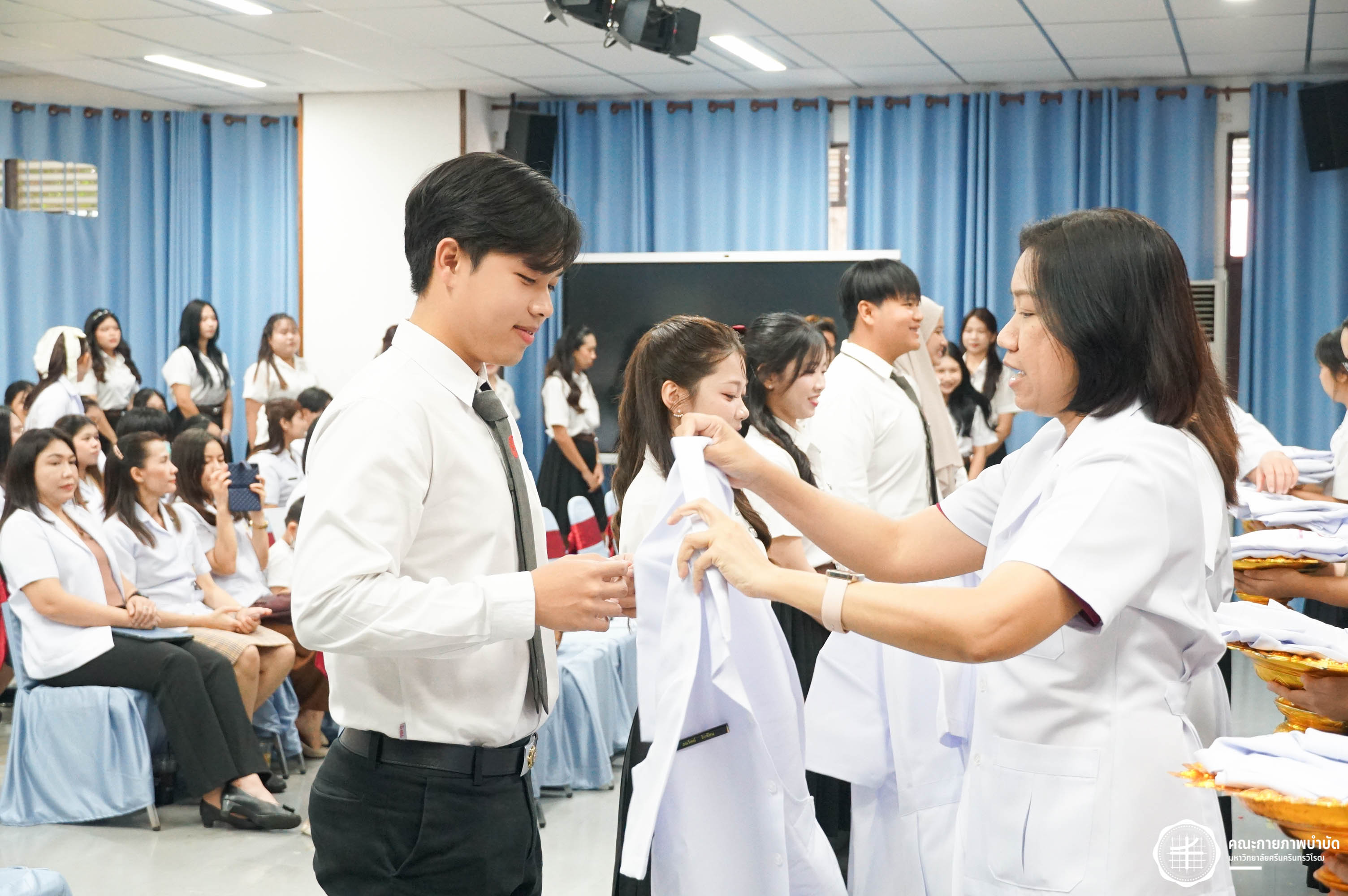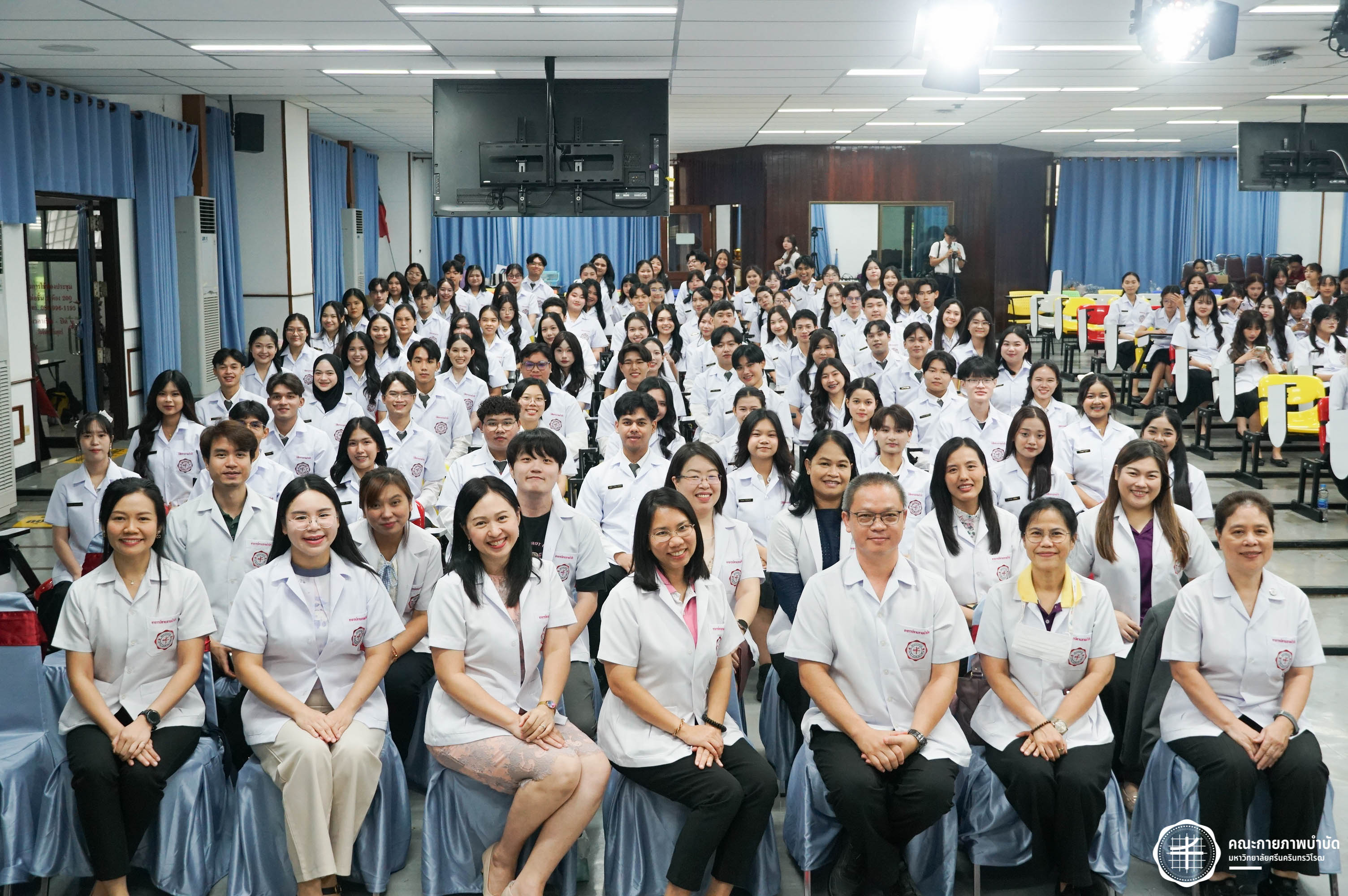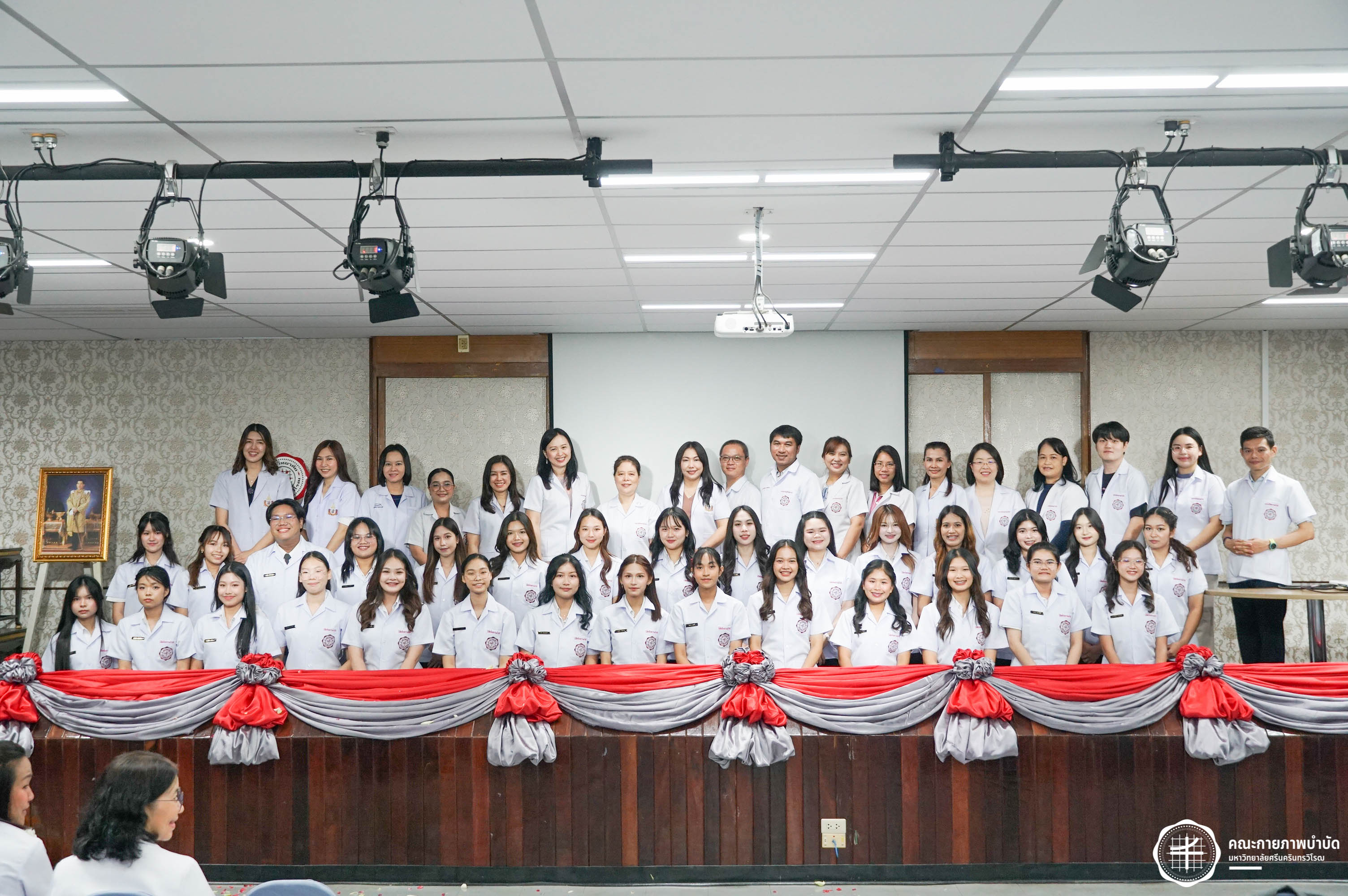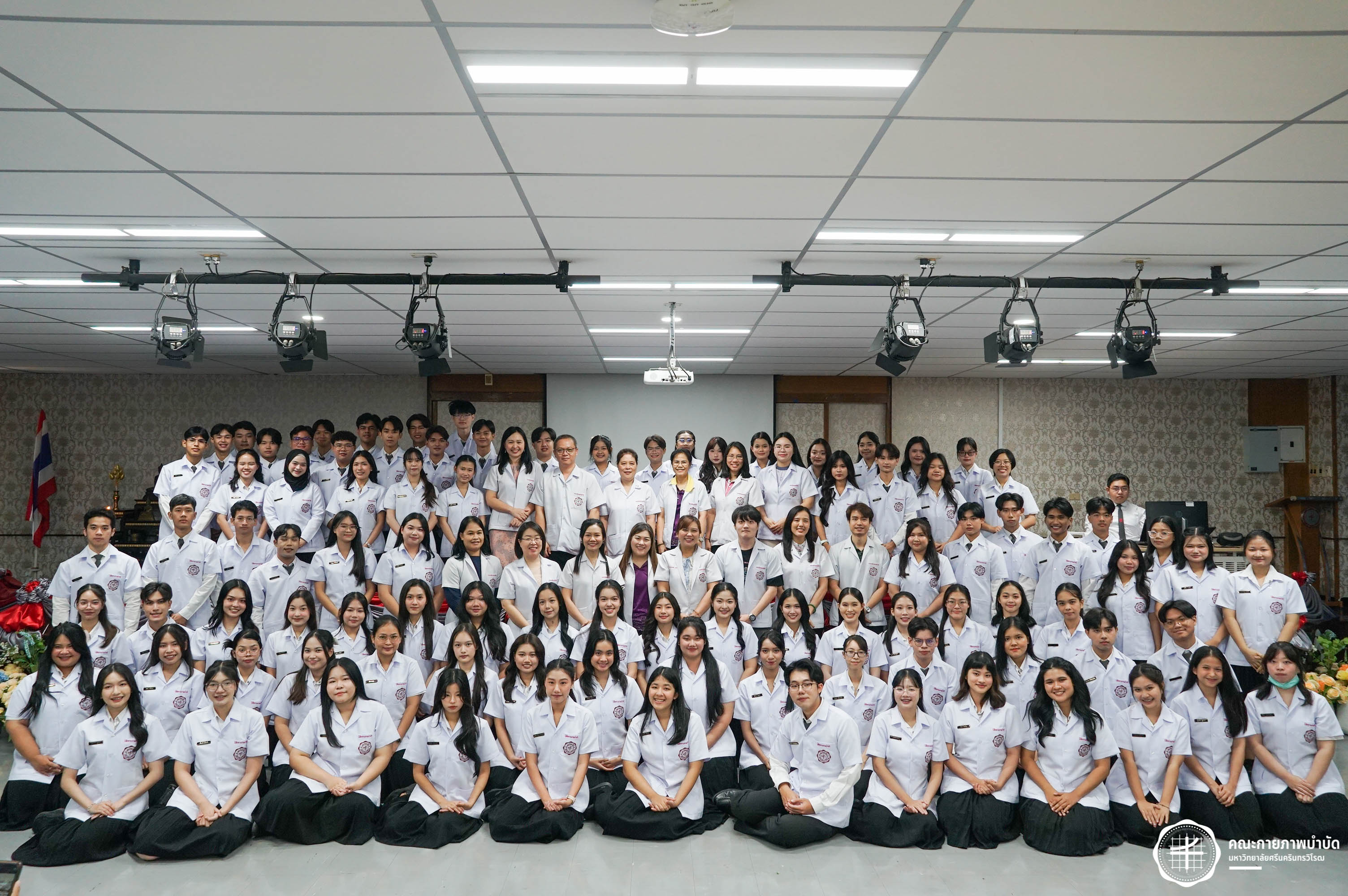 โครงการมอบเสื้อกาวน์ “ผู้นำแห่งวิชาชีพ สร้างสรรค์คุณภาพชีวิต สู่สุขภาวะที่ยั่งยืน” เมื่อวันเสาร์ที่ 3 พฤษภาคม 2568 ณ อาคารเรียนรวม มหาวิทยาลัยศรีนครินทรวิโรฒ องครักษ์ ถ่ายภาพโดย ณัฐฐา เกียรติไชยพัต อาทิตยา แสงตะวัน สิรวิชญ์ บัวรอด ธิติชัย ไทยเจริญ มธุลดา โปร่งไธสง นูรอาซีเก็นต์ มูเล็ม นิสิตคณะกายภาพบำบัด มศว
