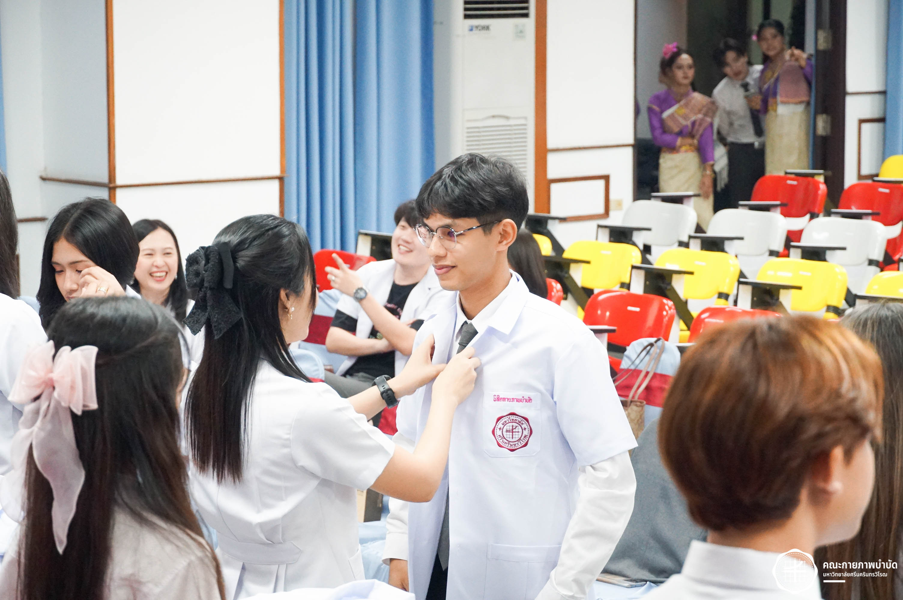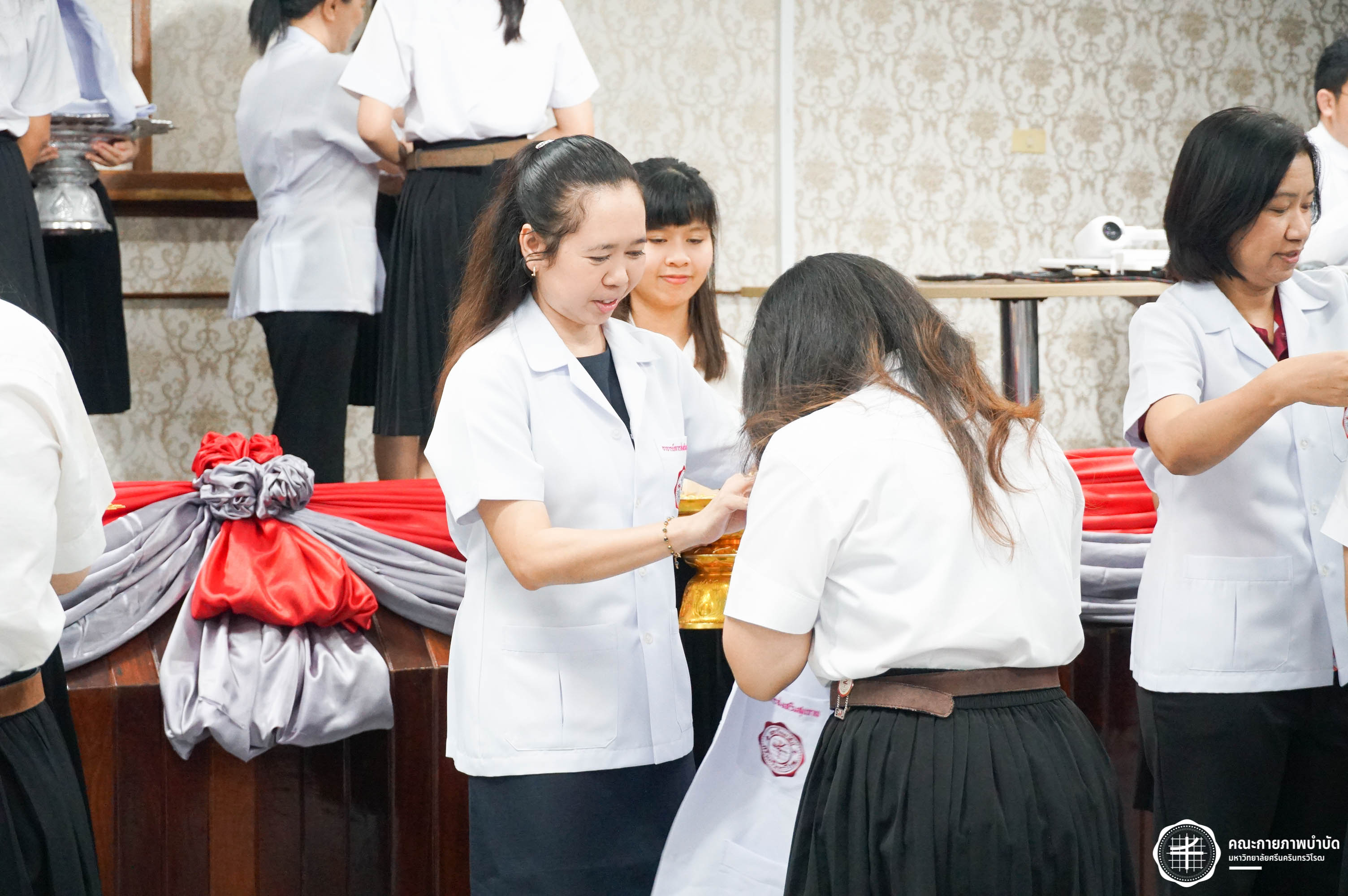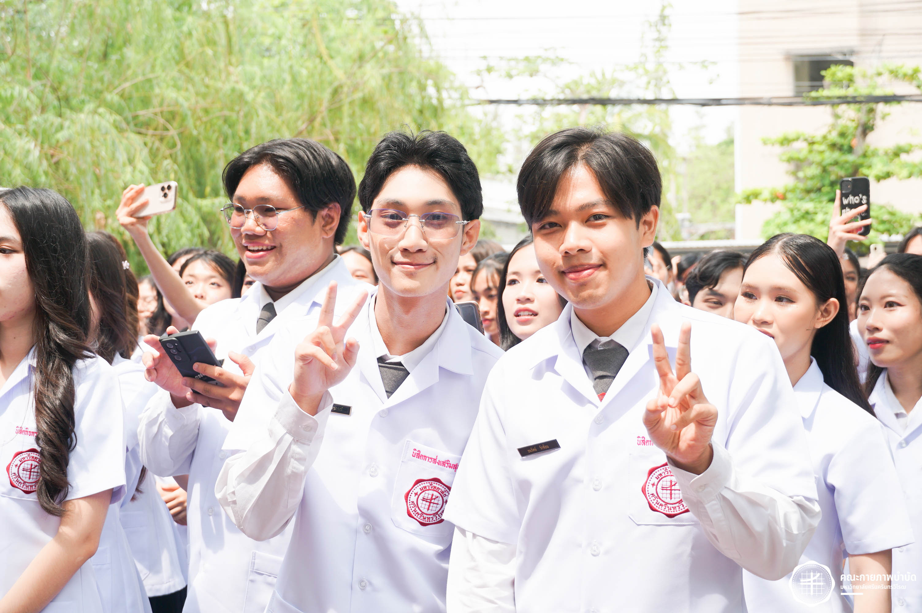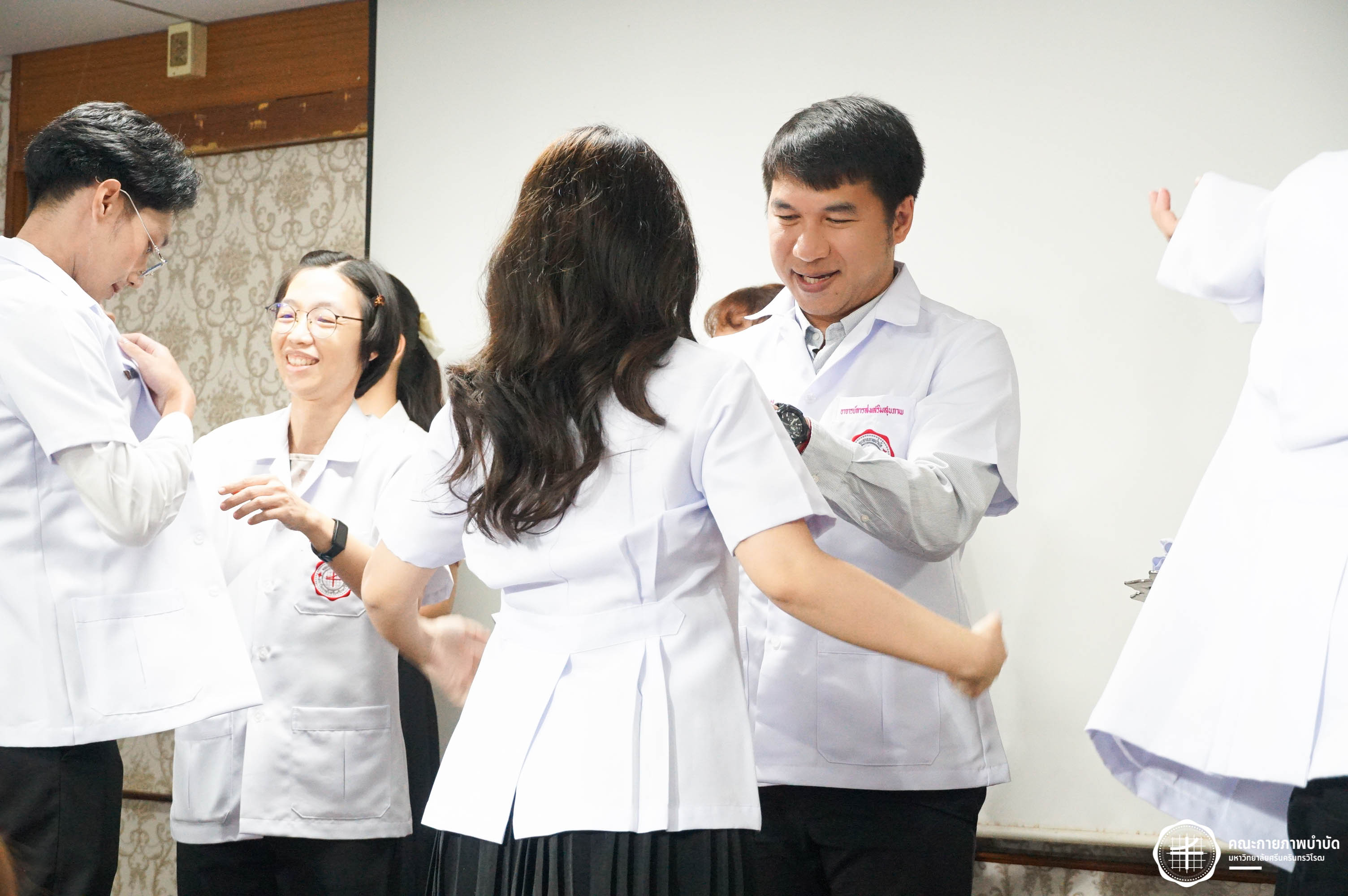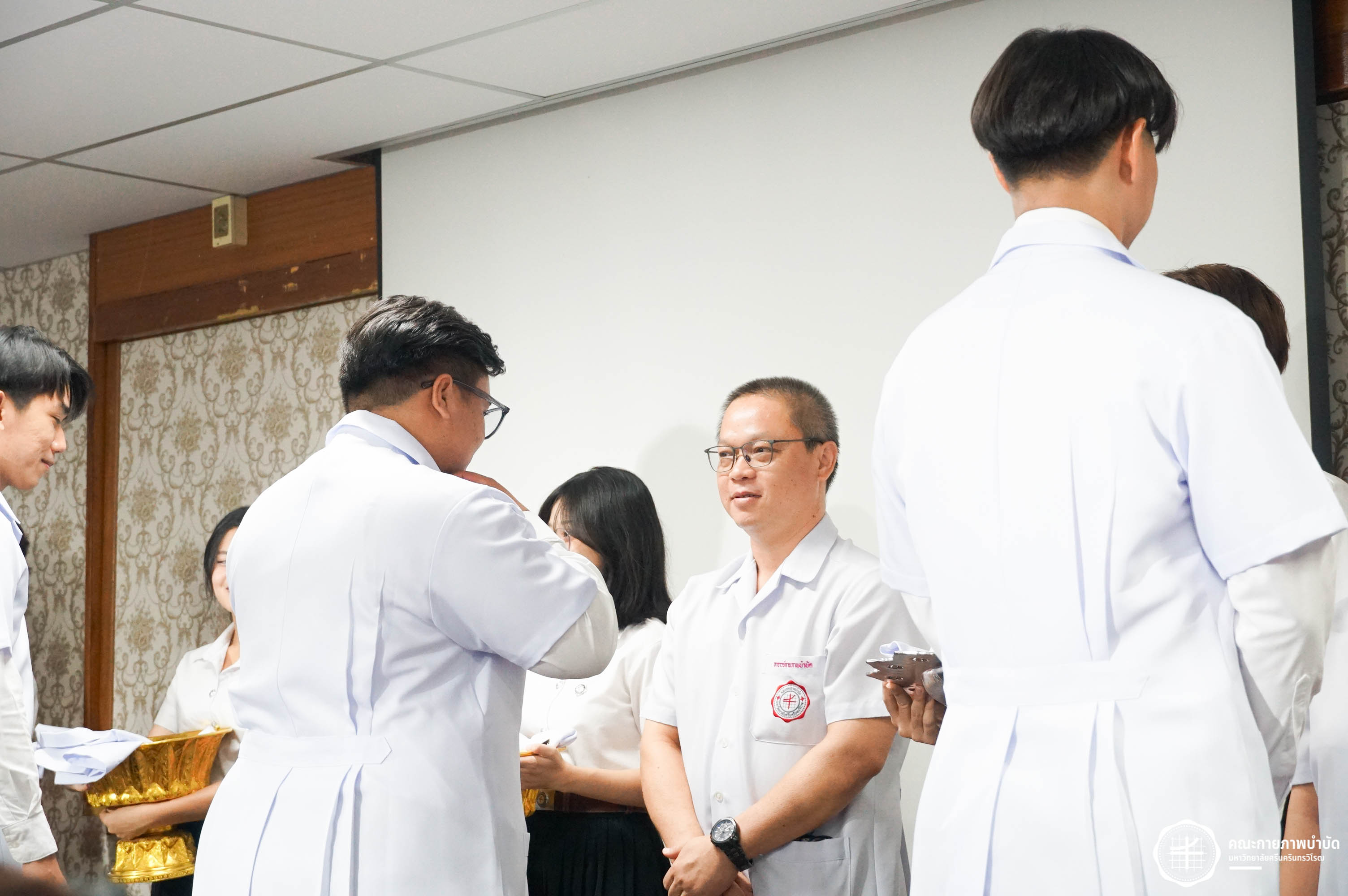 โครงการมอบเสื้อกาวน์ “ผู้นำแห่งวิชาชีพ สร้างสรรค์คุณภาพชีวิต สู่สุขภาวะที่ยั่งยืน” เมื่อวันเสาร์ที่ 3 พฤษภาคม 2568 ณ อาคารเรียนรวม มหาวิทยาลัยศรีนครินทรวิโรฒ องครักษ์ ถ่ายภาพโดย ณัฐฐา เกียรติไชยพัต อาทิตยา แสงตะวัน สิรวิชญ์ บัวรอด ธิติชัย ไทยเจริญ มธุลดา โปร่งไธสง นูรอาซีเก็นต์ มูเล็ม นิสิตคณะกายภาพบำบัด มศว
