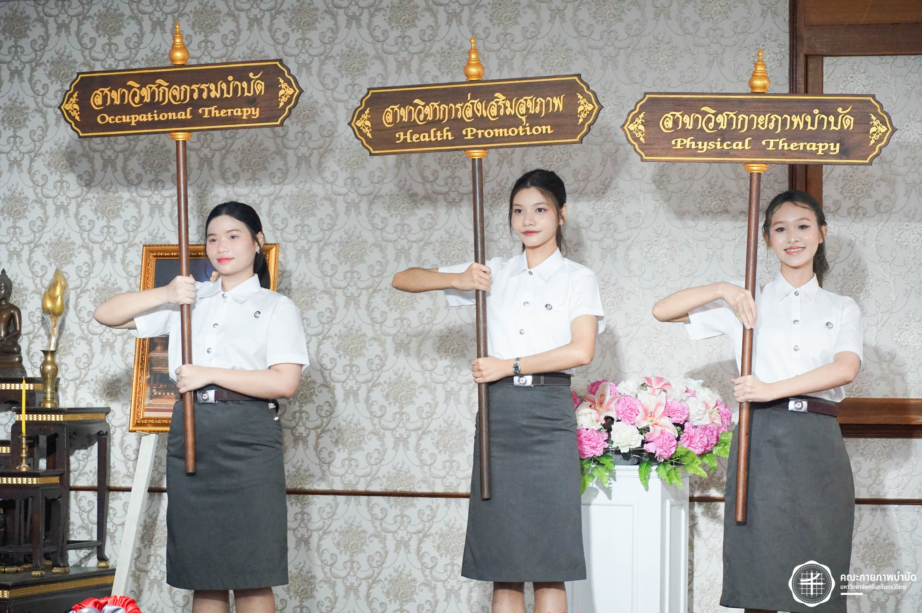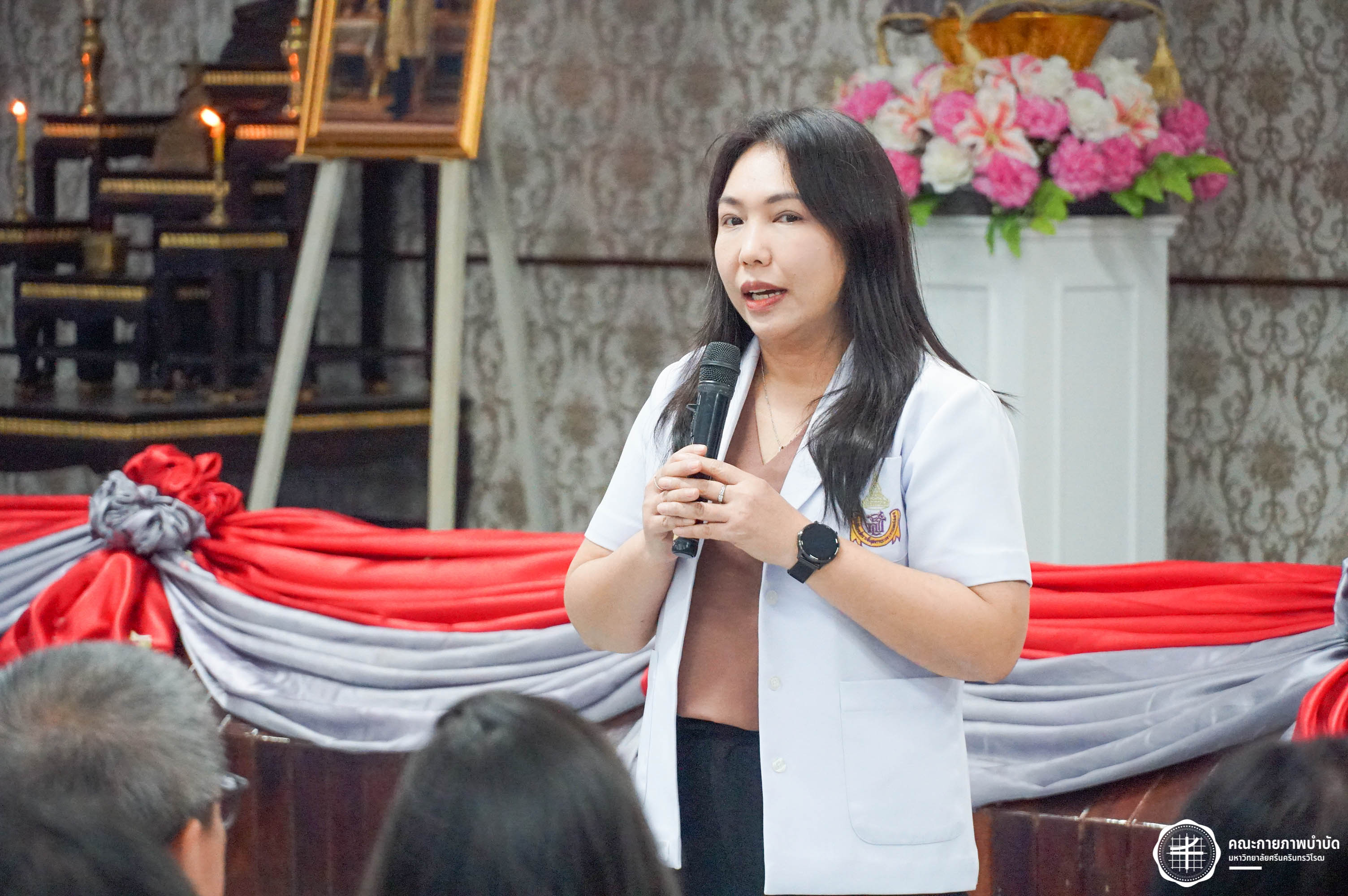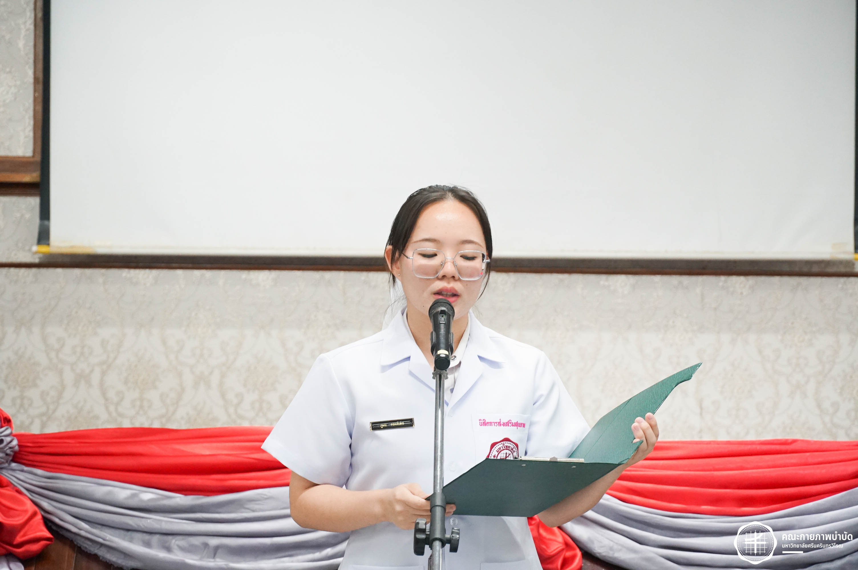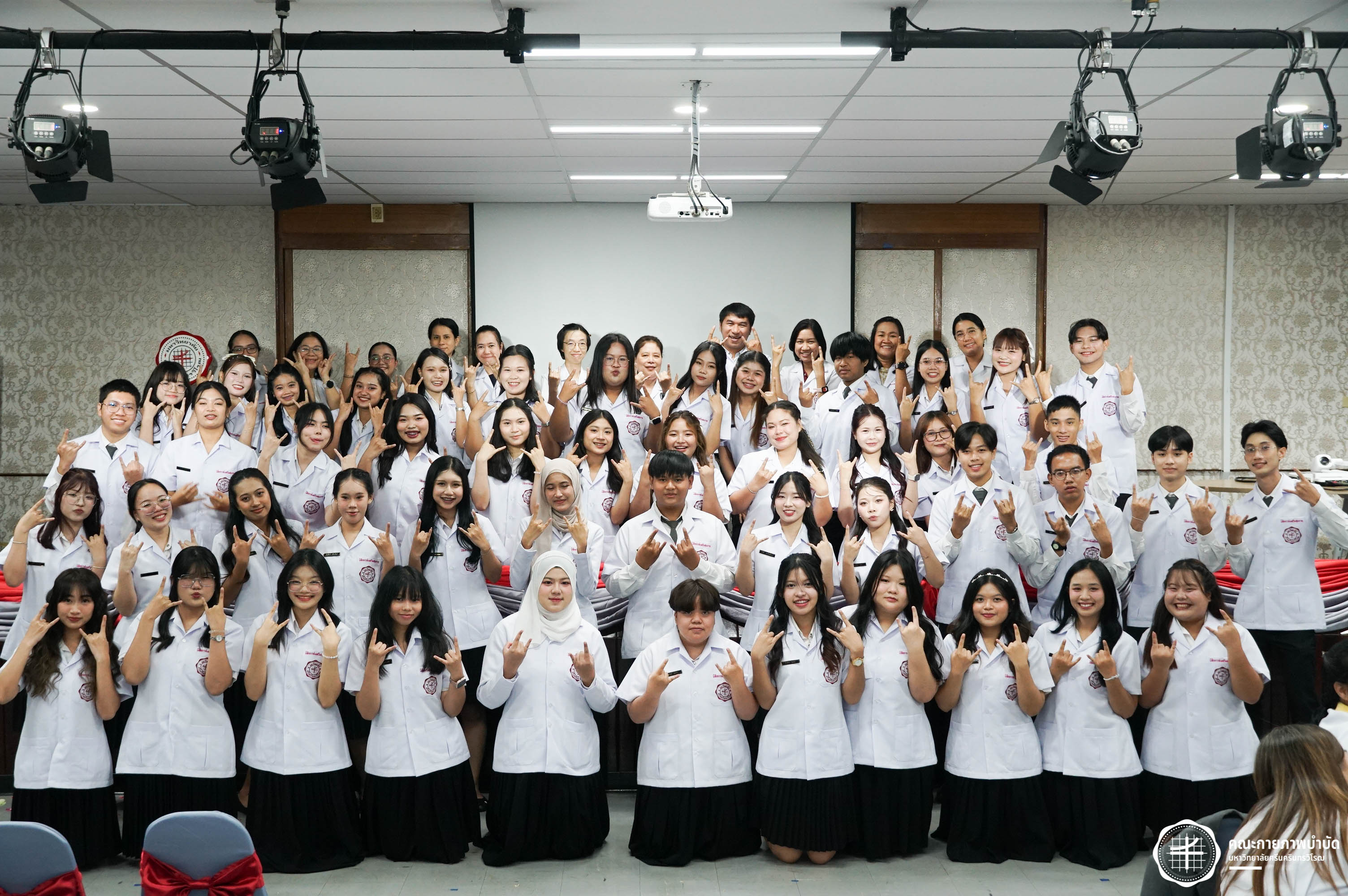 โครงการมอบเสื้อกาวน์ “ผู้นำแห่งวิชาชีพ สร้างสรรค์คุณภาพชีวิต สู่สุขภาวะที่ยั่งยืน” เมื่อวันเสาร์ที่ 3 พฤษภาคม 2568 ณ อาคารเรียนรวม มหาวิทยาลัยศรีนครินทรวิโรฒ องครักษ์ ถ่ายภาพโดย ณัฐฐา เกียรติไชยพัต อาทิตยา แสงตะวัน สิรวิชญ์ บัวรอด ธิติชัย ไทยเจริญ มธุลดา โปร่งไธสง นูรอาซีเก็นต์ มูเล็ม นิสิตคณะกายภาพบำบัด มศว