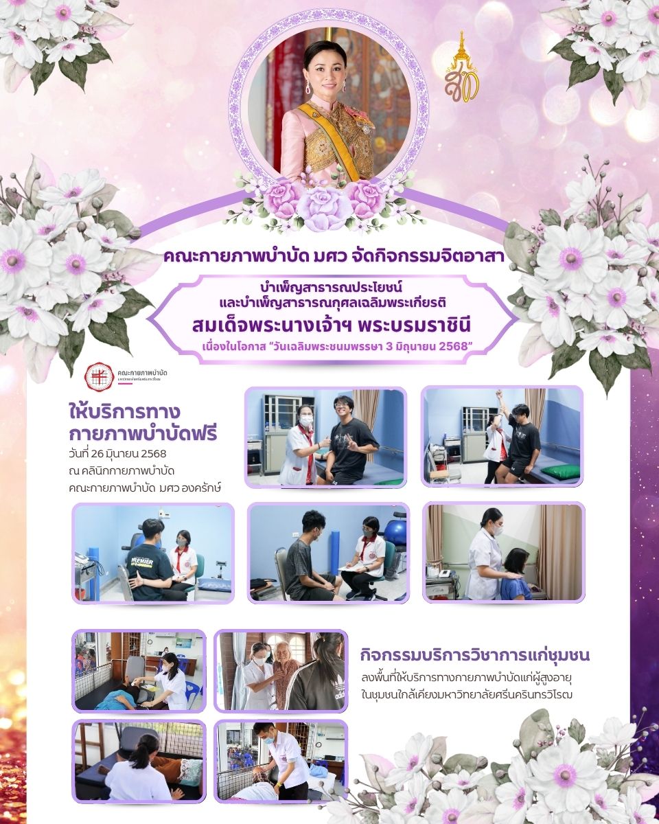 คณะกายภาพบำบัด มศว จัดกิจกรรมให้บริการทางกายภาพบำบัดฟรี และกิจกรรมบริการวิชาการแก่ชุมชน ลงพื้นที่ให้บริการทางกายภาพบำบัดแก่ผู้สูงอายุในชุมชนใกล้เคียงมหาวิทยาลัยศรีนครินทรวิโรฒ