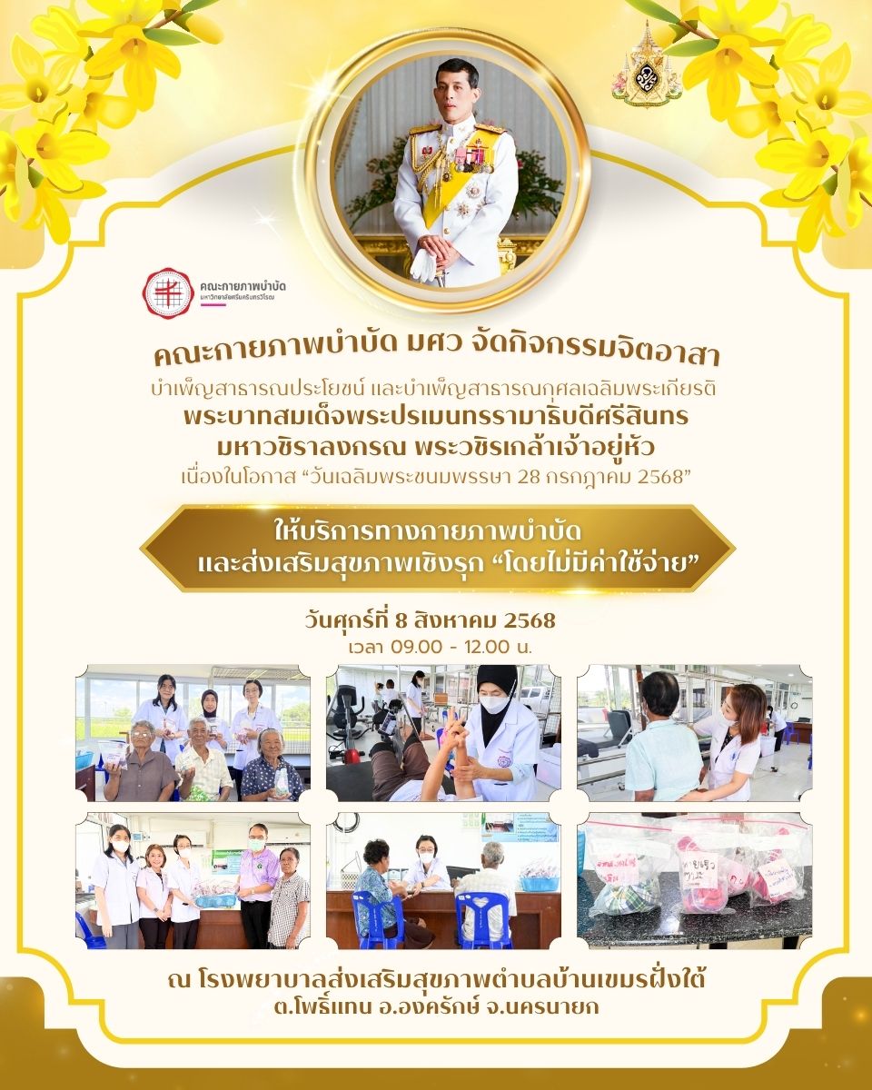 คณะกายภาพบำบัด มศว จัดกิจกรรมจิตอาสา บำเพ็ญสาธารณประโยชน์ และบำเพ็ญสาธารณกุศลเฉลิมพระเกียรติ