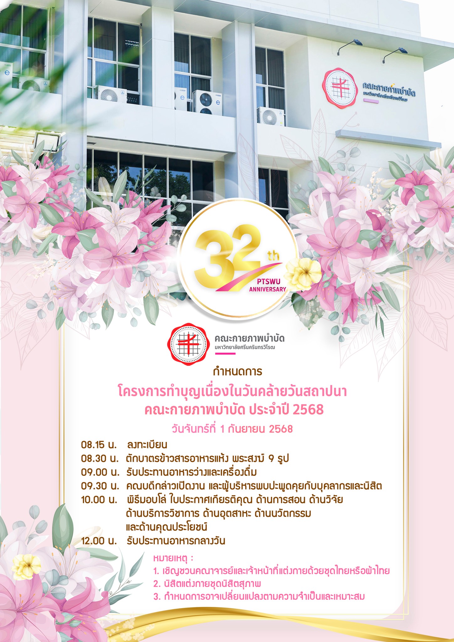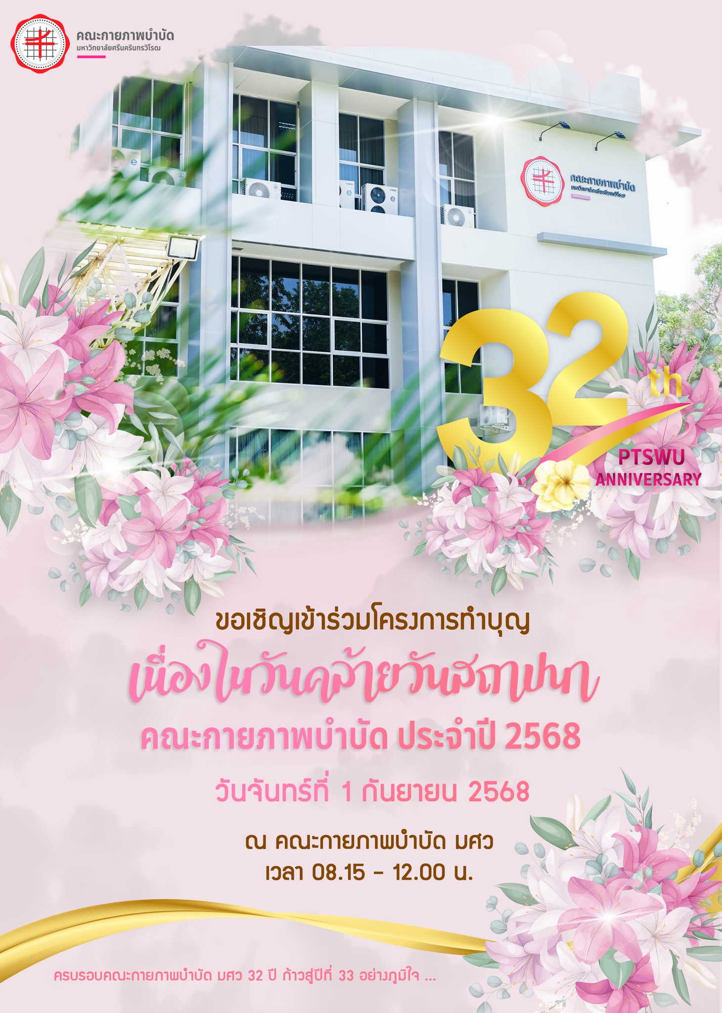 1 กันยายน 2568 ครบรอบ 32 ปี คณะกายภาพบำบัด มศว