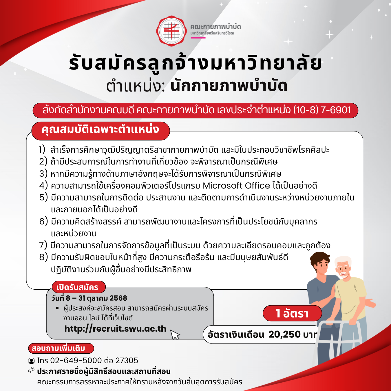 คณะกายภาพบำบัด มศว รับสมัครลูกจ้างมหาวิทยาลัย