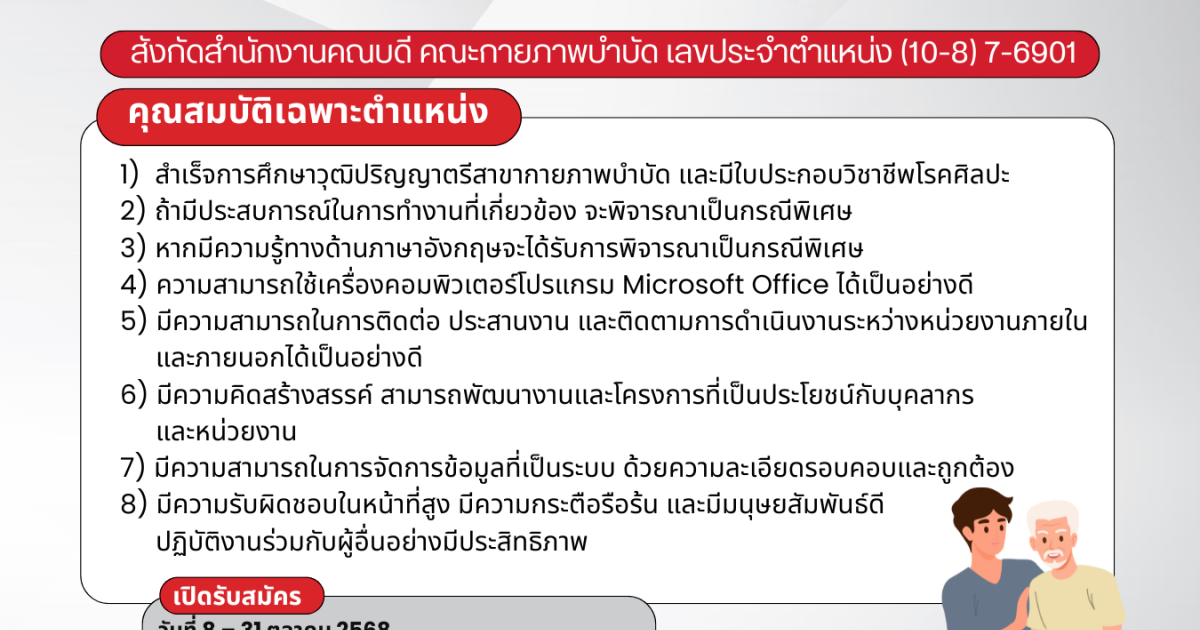 ตำแหน่ง นักกายภาพบำบัด เลขประจำตำแหน่ง (10-8) 7-6901