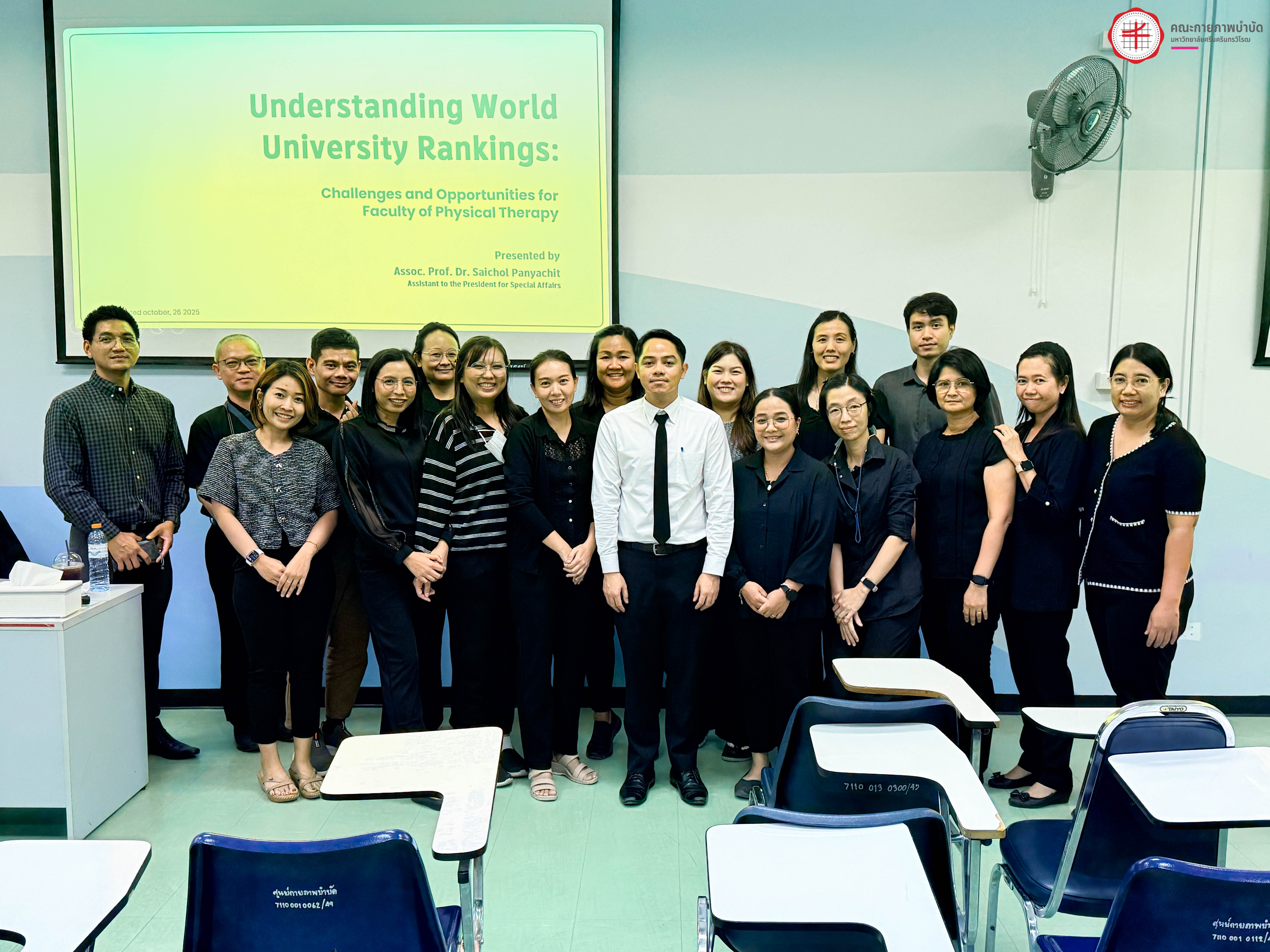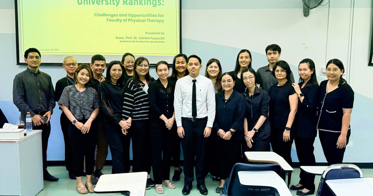 คณะกายภาพบำบัด มศว จัดโครงการ Research Ranking :ก้าวสู่ความเป็นเลิศด้านงานวิจัย โดยได้รับเกียรติจาก รศ.ดร.สายชล ปัญญชิต (ผู้ช่วยอธิการบดีฝ่ายกิจการพิเศษ) บรรยายเรื่องการจัดอันดับ Research Ranking เมื่อวันที่ 28 ตุลาคม 2568 ณ คณะกายภาพบำบัด มศว