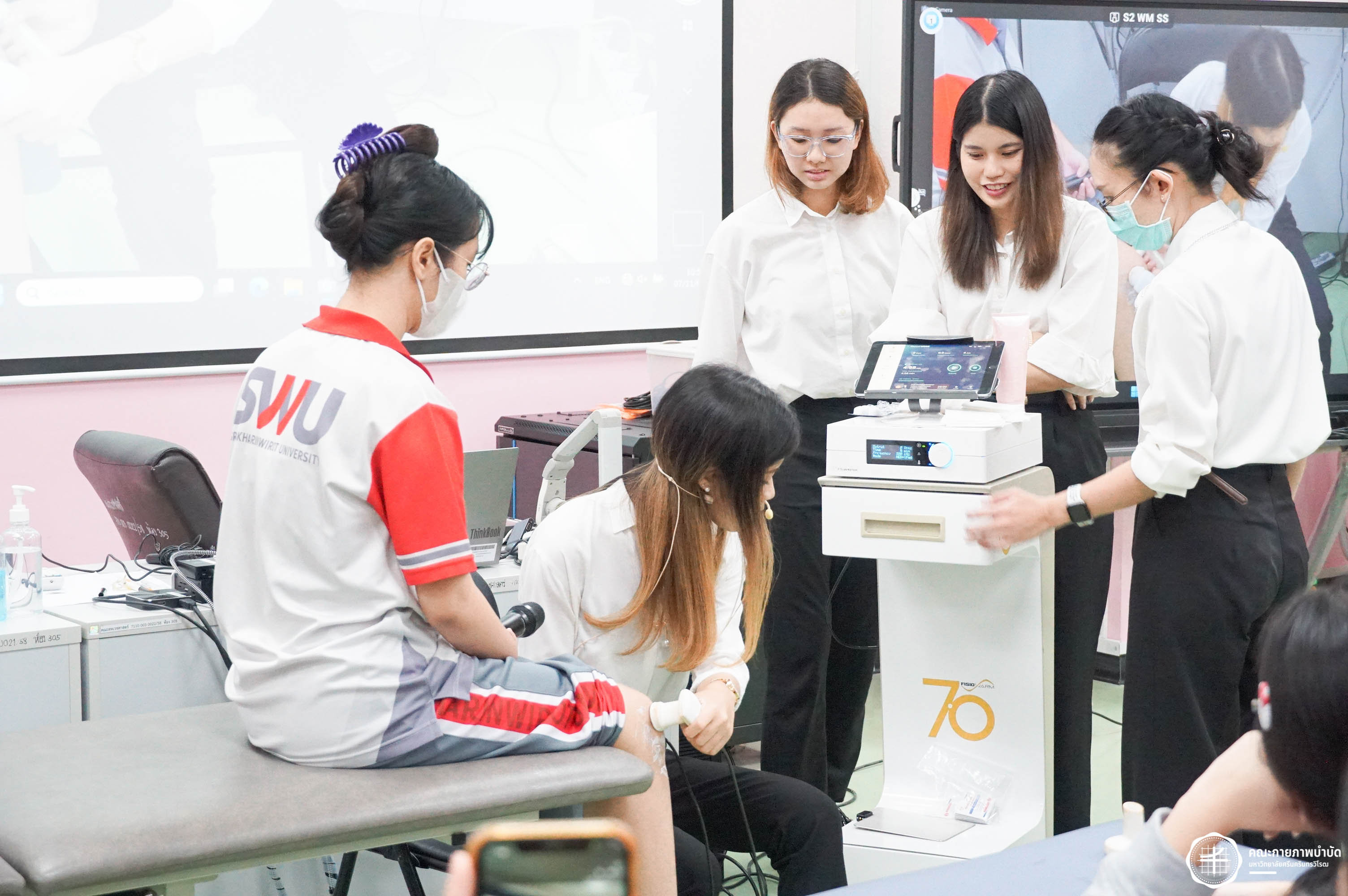 คณะกายภาพบำบัด มศว จัดโครงการสร้างเสริมสมรรถนะและทักษะความรู้ด้านวิชาชีพ ให้กับอาจารย์และนิสิตภาควิชากายภาพบำบัด ชั้นปีที่ 3 เพื่อให้อาจารย์และนิสิตมีความรู้เกี่ยวกับเครื่องมือทางกายภาพบำบัดที่ทันสมัย เมื่อวันที่ 7 พฤศจิกายน 2568
