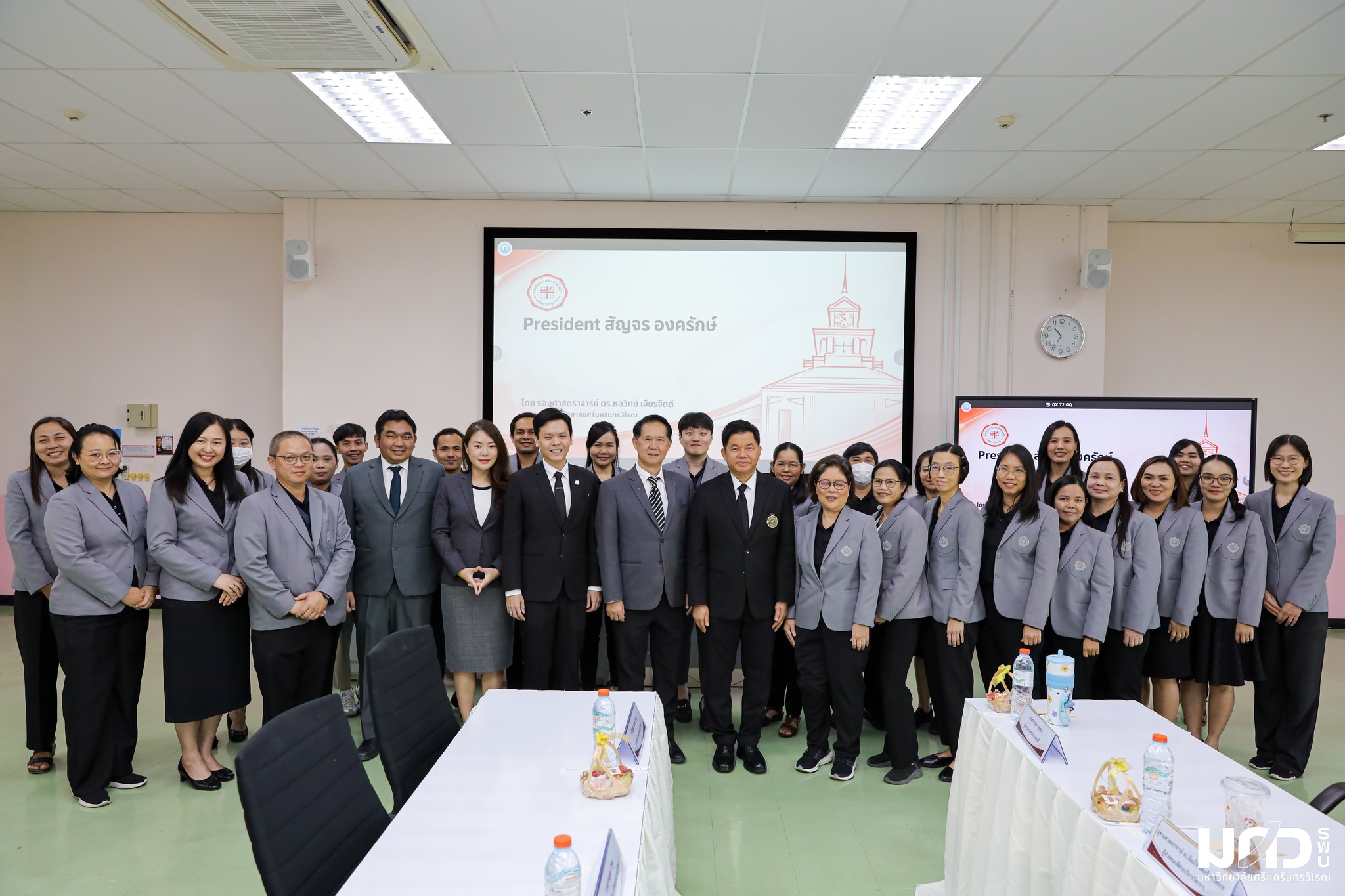 รองศาสตราจารย์ ดร.นิตยา วิริยะธารากิจ คณบดีคณะกายภาพบำบัด พร้อมด้วยผู้บริหาร และบุคลากร ให้การต้อนรับรองศาสตราจารย์ ดร.ชลวิทย์ เจียรจิตต์ อธิการบดีมหาวิทยาลัยศรีนครินทรวิโรฒ พร้อมด้วยคณะผู้บริหาร ร่วมกิจกรรม “President สัญจร” ณ คณะกายภาพบำบัด มศว องครักษ์ ร่วมพบปะ พูดคุย และแลกเปลี่ยนความคิดเห็นกับบุคลากรคณะกายภาพบำบัด เพื่อร่วมกันพัฒนาคณะกายภาพบำบัดที่เป็นส่วนหนึ่งของ มศว ให้ก้าวไปด้วยกันอย่างมั่นคงและยั่งยืนต่อไป