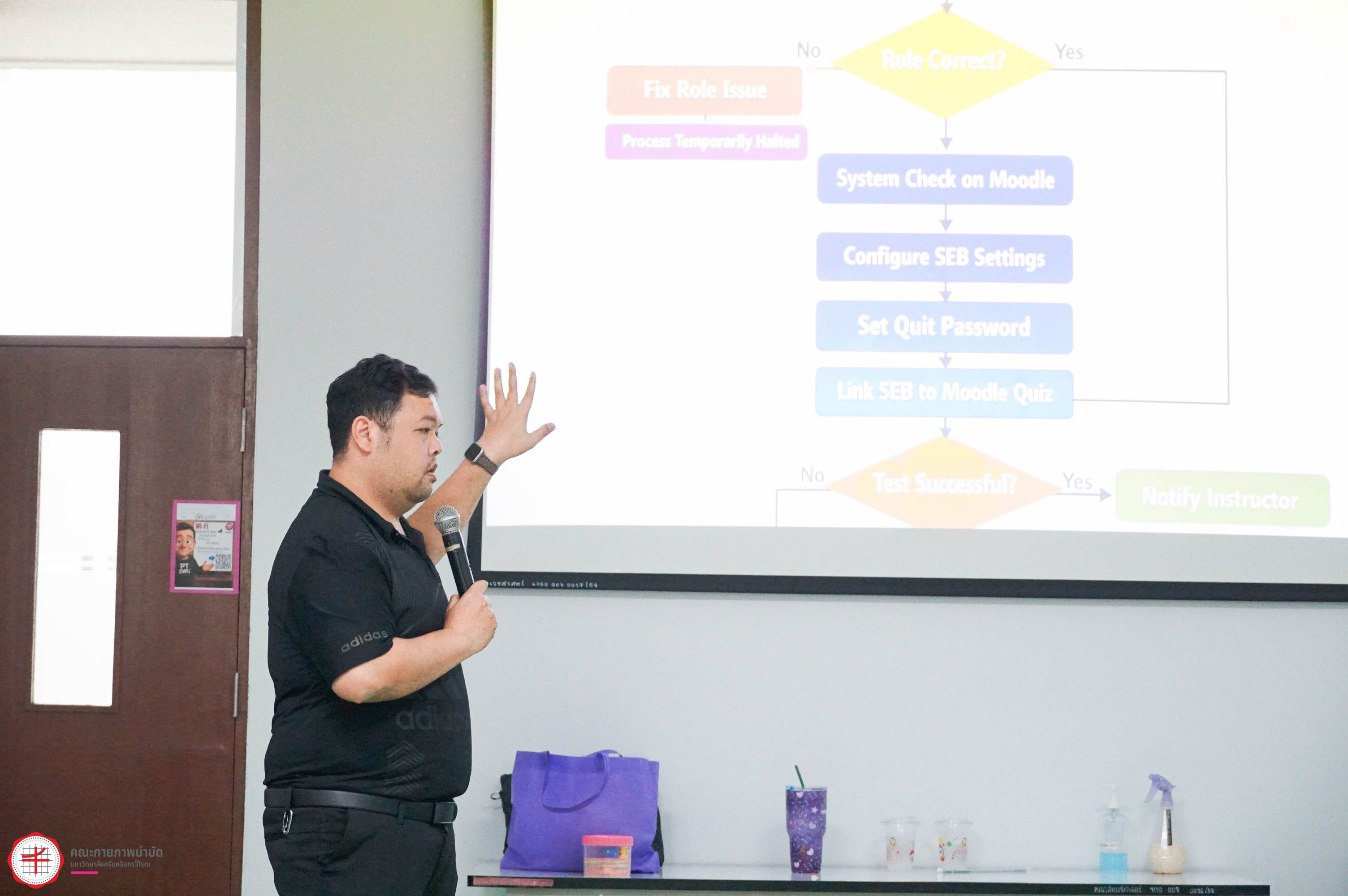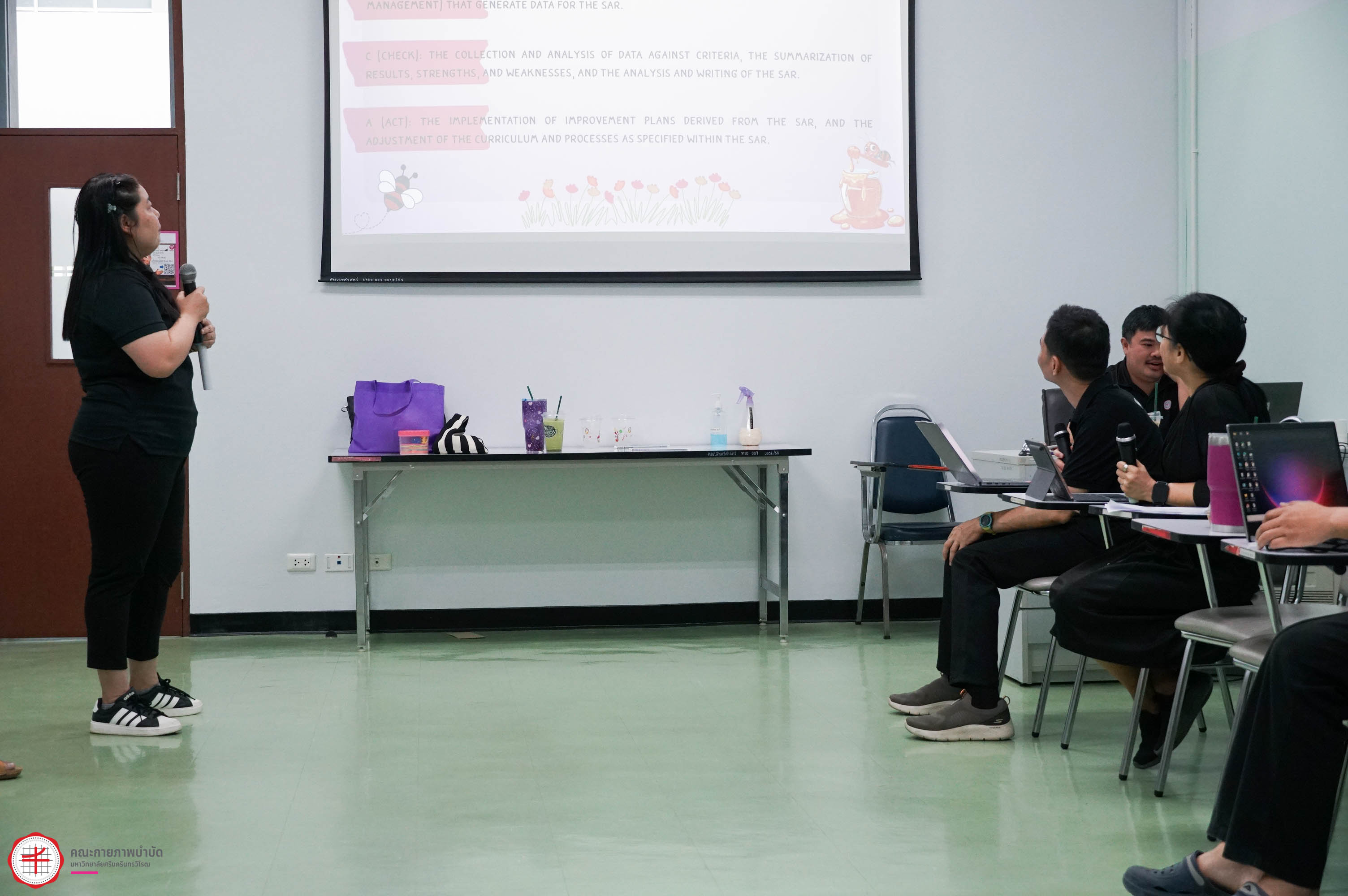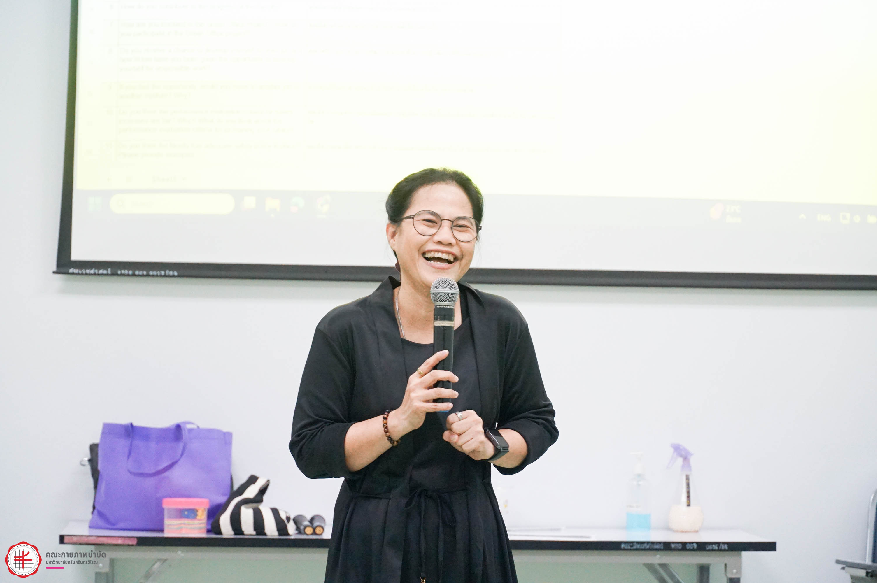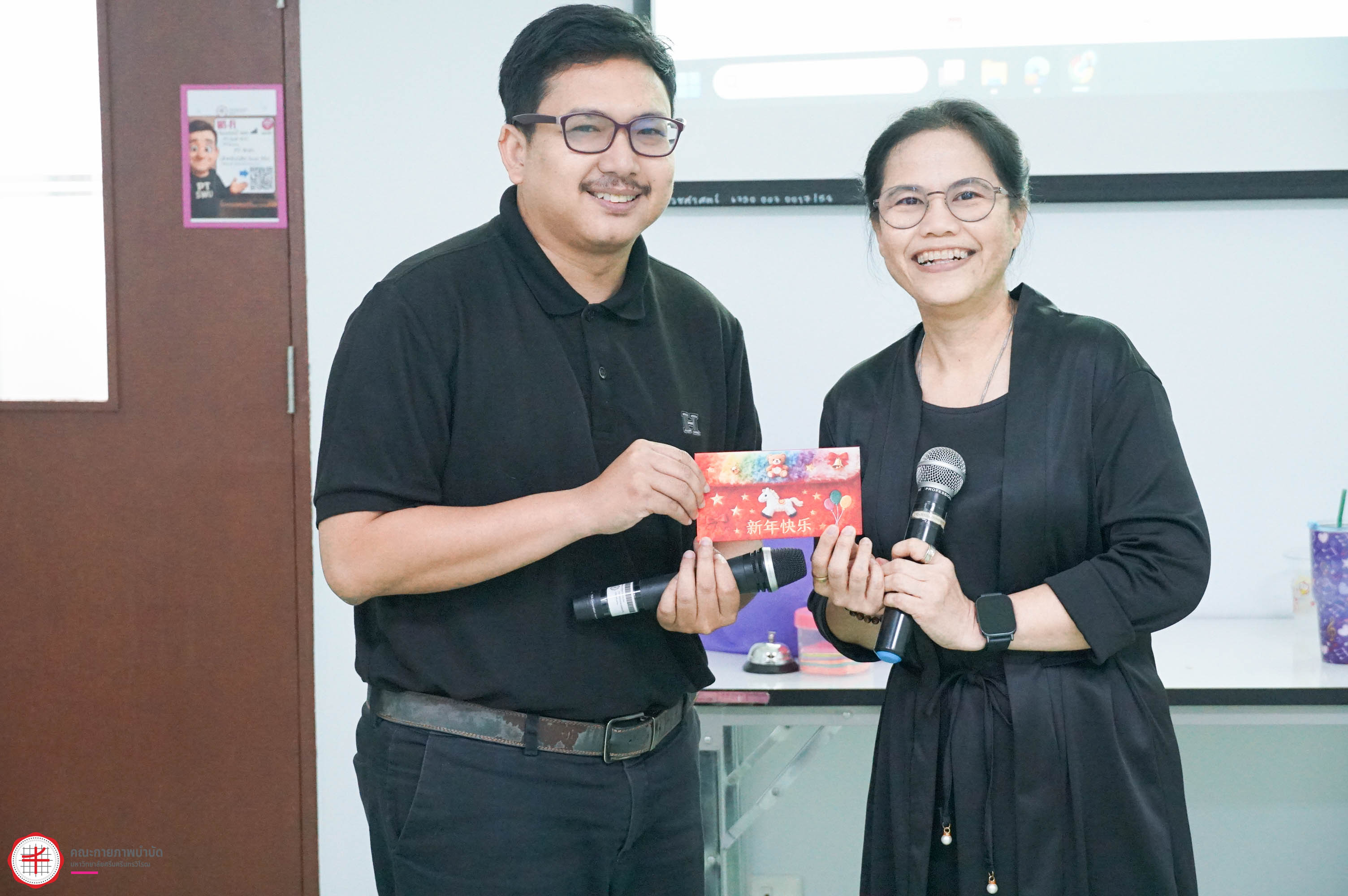 22 มกราคม 2569 คณะกายภาพบำบัด มศว จัดโครงการส่งเสริมทักษะการสื่อสารภาษาอังกฤษในสำนักงาน เพื่อให้บุคลากรสายปฏิบัติการมีความรู้ ความสามารถในการใช้ภาษาอังกฤษสำหรับการสื่อสารในการปฏิบัติงาน และใช้ในชีวิตประจำวัน โดยมี ผศ.ดร.สายธิดา ลาภอนันตสิน และ อ.ดร.ณฐภัทชกฤษฎ์ ทิมาบุตร ให้เกียรติมาเป็นวิทยากรในการอบรมครั้งนี้