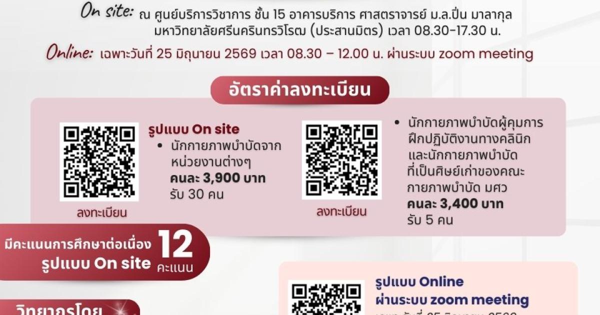 On site วันที่ 25 - 26 มิถุนายน 2569 ณ ศูนย์บริการวิชาการ ชั้น 15