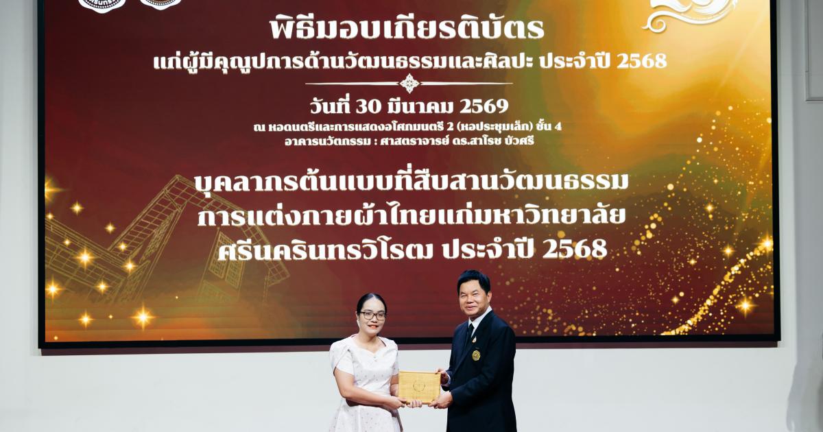 ได้รับเกียรติบัตร บุคลากรต้นแบบที่สืบสานวัฒนธรรมการแต่งกายผ้าไทยมหาวิทยาลัยศรีนครินทรวิโรฒ ประจำปี 2568