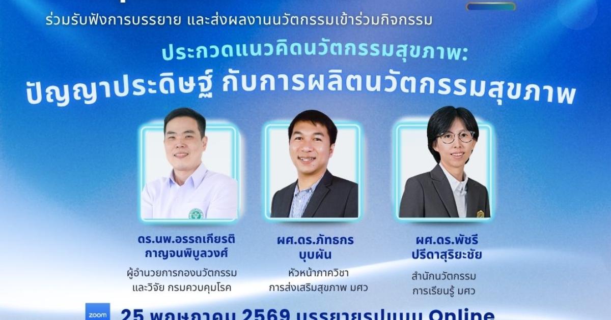 กิจกรรมที่ 2 “ประกวดแนวคิดนวัตกรรม: ปัญญาประดิษฐ์ กับการผลิตนวัตกรรมสุขภาพ” ระหว่างวันที่ 25 พฤษภาคม 2569 ถึงวันที่ 22 กรกฎาคม 2569