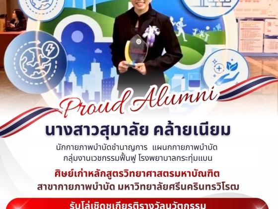 คณะกายภาพบำบัด มศว ขอแสดงความยินดีกับศิษย์เก่านางสาว สุมาลัย คล้ายเนียม นักกายภาพบำบัดชำนาญการ แผนกกายภาพบำบัด กลุ่มงานเวชกรรมฟื้นฟู …