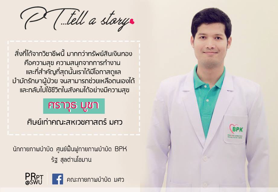 สุดท้ายนี้ พี่ขอเป็นกำลังใจให้น้องๆประสบความสำเร็จ ทั้งด้านการเรียน การทำงาน และมีความสุข ความภูมิใจที่ได้เป็นนักกายภาพบำบัด จาก รั้ว มศว นะครับ