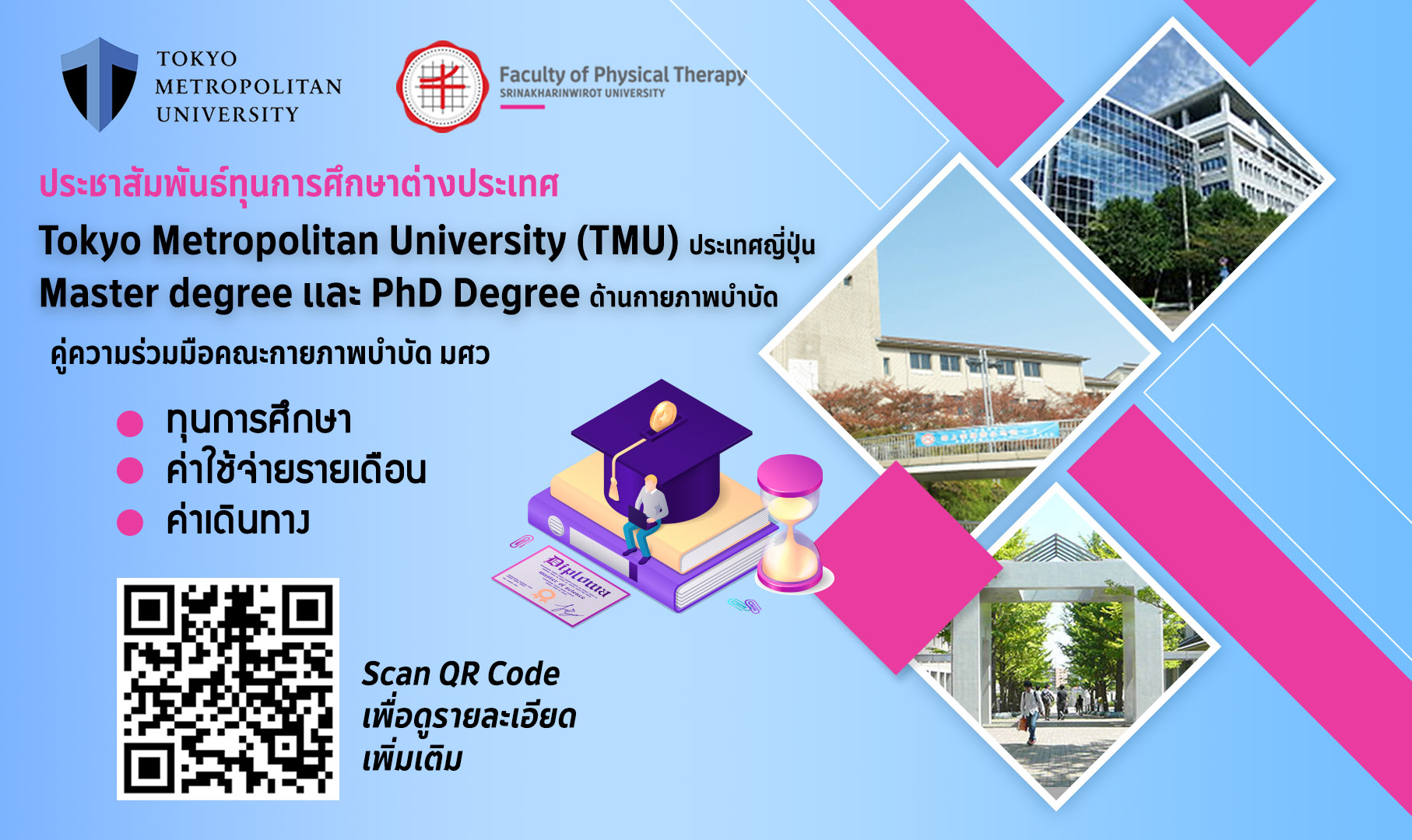 ทุนการศึกษาต่อในระดับปริญญาโท และปริญญาเอก ทางด้านกายภาพบำบัด ณ Tokyo Metropolitan University ประเทศญี่ปุ่น (คู่ความร่วมมือคณะกายภาพบำบัด มศว)