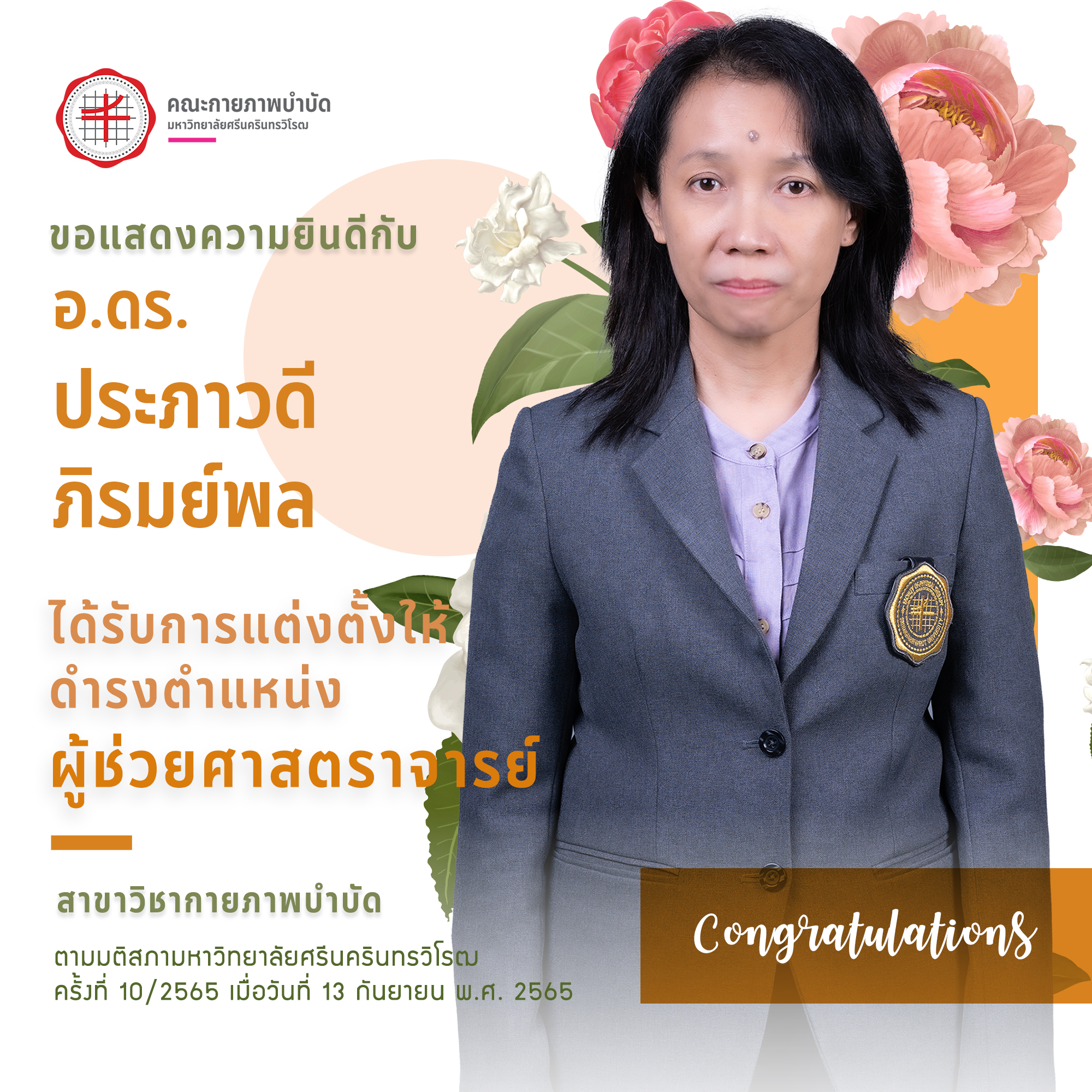 1. อ.ดร.ประภาวดี ภิรมย์พล (สาขาวิชากายภาพบำบัด)