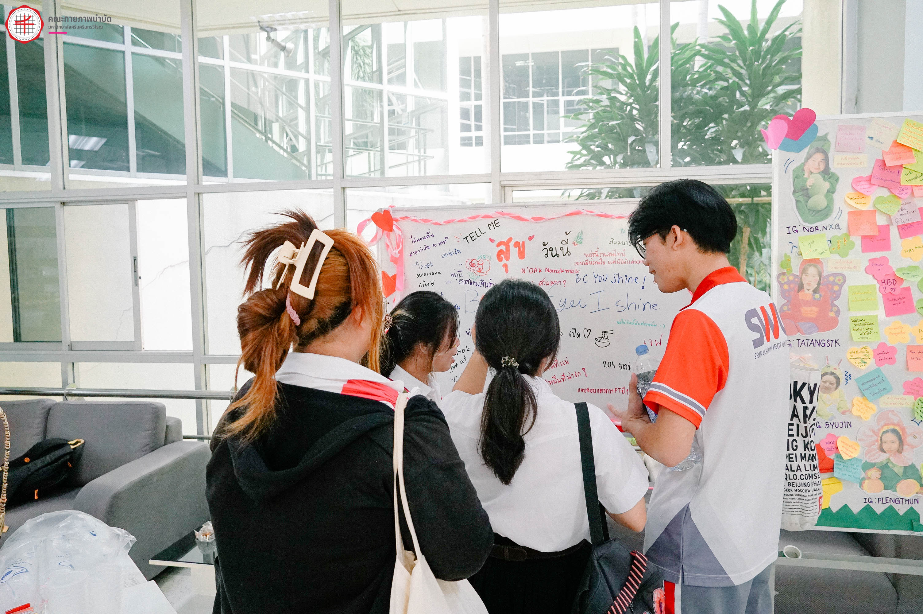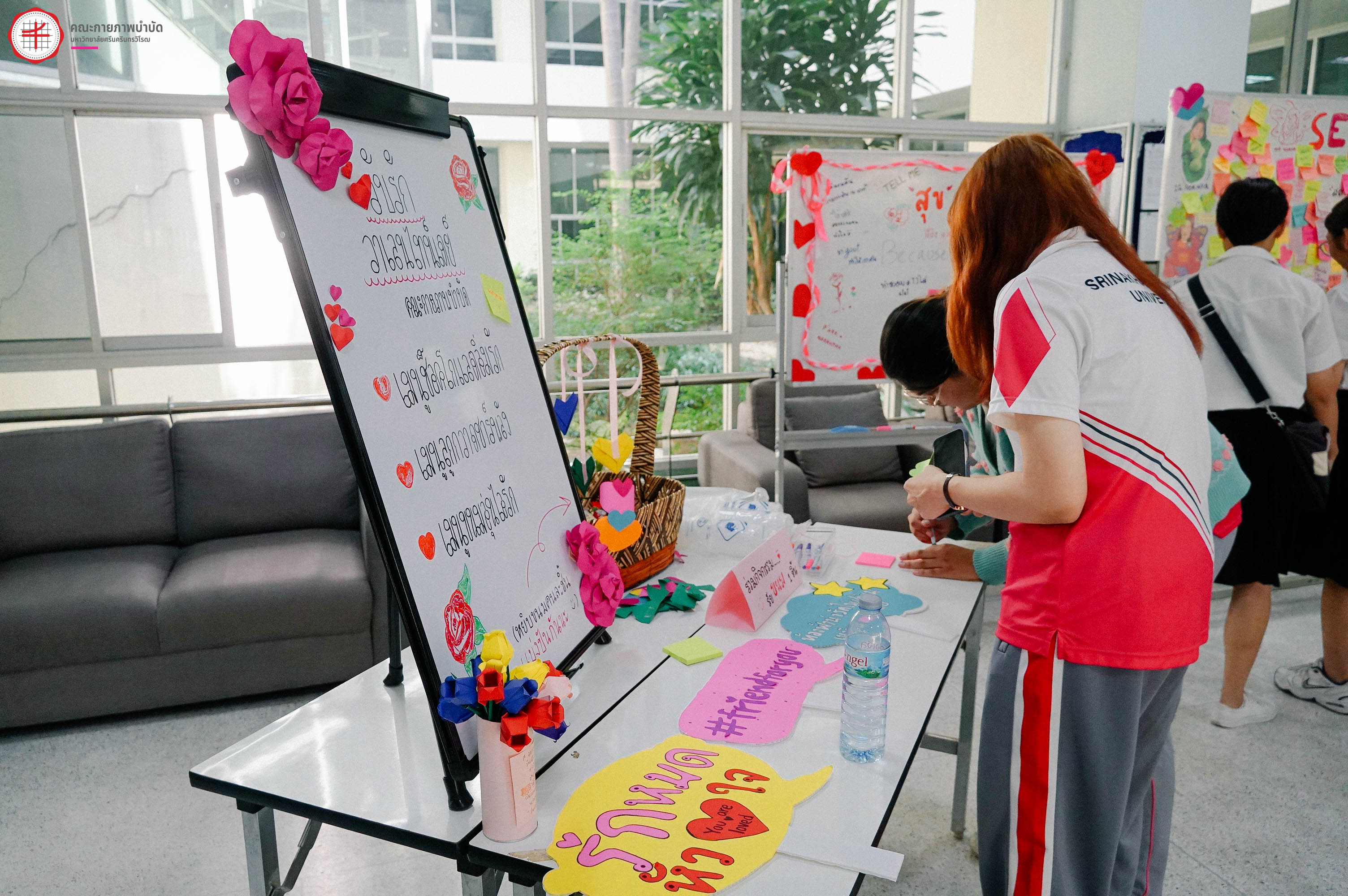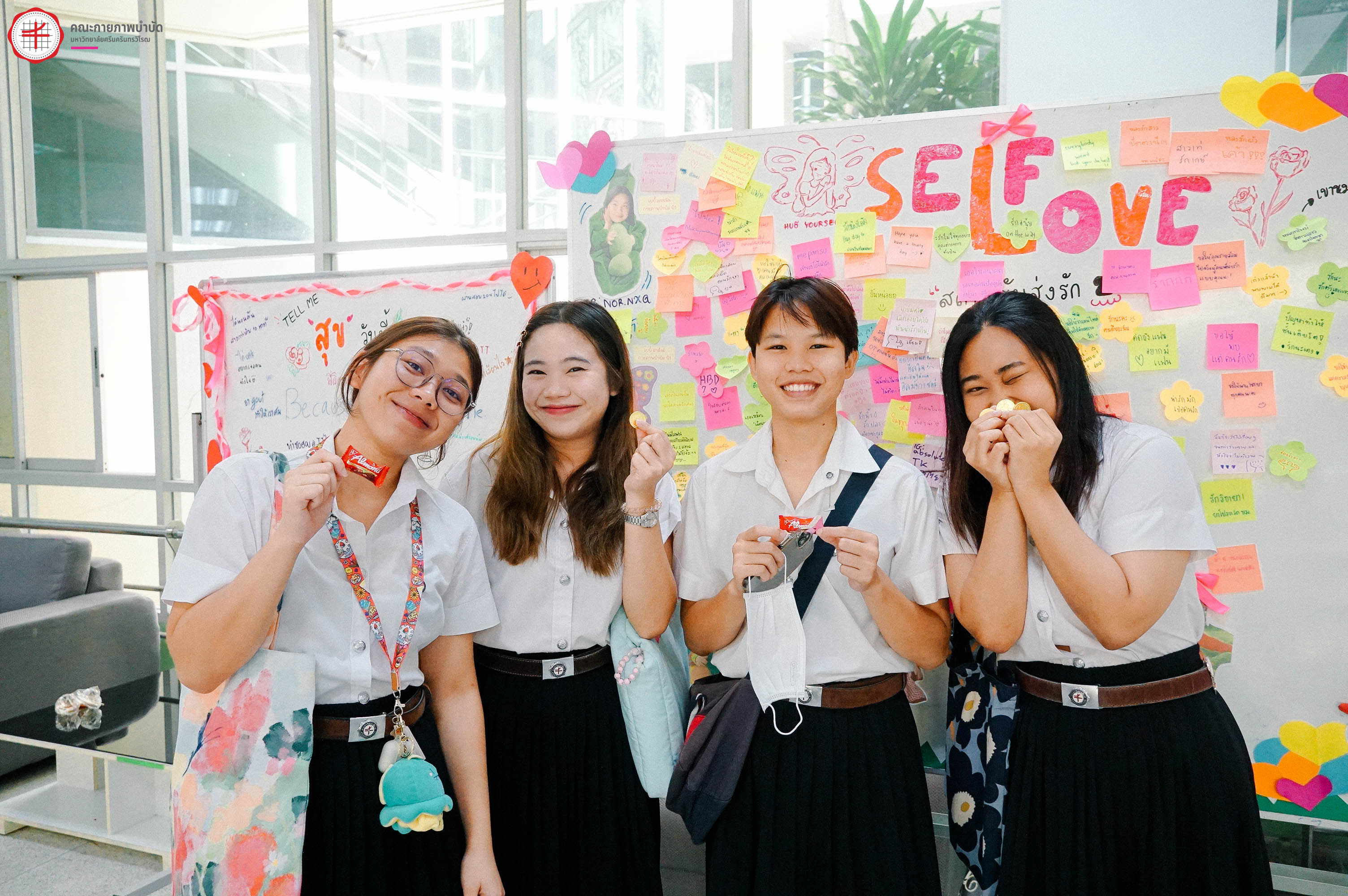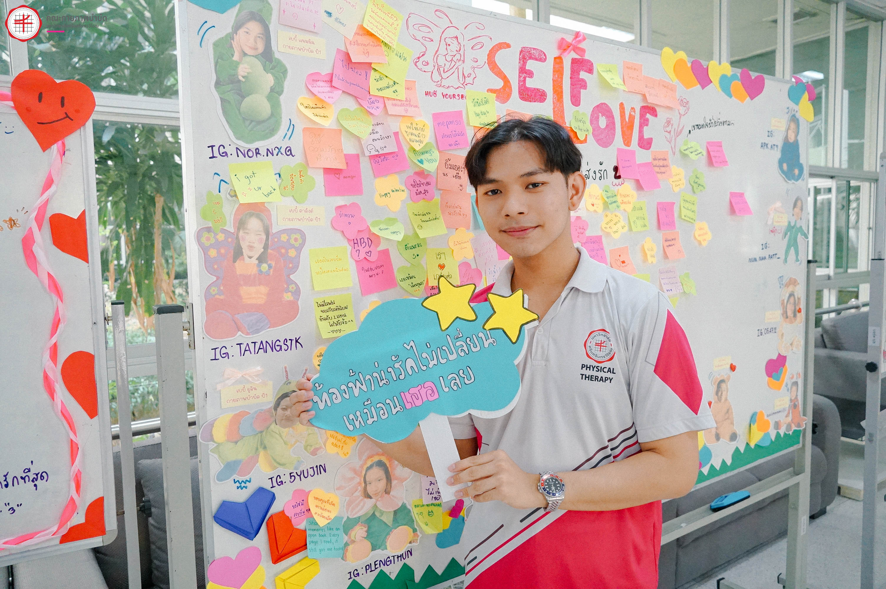 วันที่ 12-16 กุมภาพันธ์ 2567 คณะกายภาพบำบัด มศว จัดกิจกรรม "Self - Love" ชวนมาบอกรักตัวเอง ต้อนรับเทศกาลแห่งความรัก เปิดพื้นที่ให้นิสิตมาเขียนบอกรัก ชื่นชมตัวเอง หรือขอกำลังใจ ร่วมเติมข้อความเชิงบวก ให้กำลังใจเพื่อน ๆ และกิจกรรม Mini workshop "เสริมสร้างการเห็นคุณค่าและรักตนเอง"
