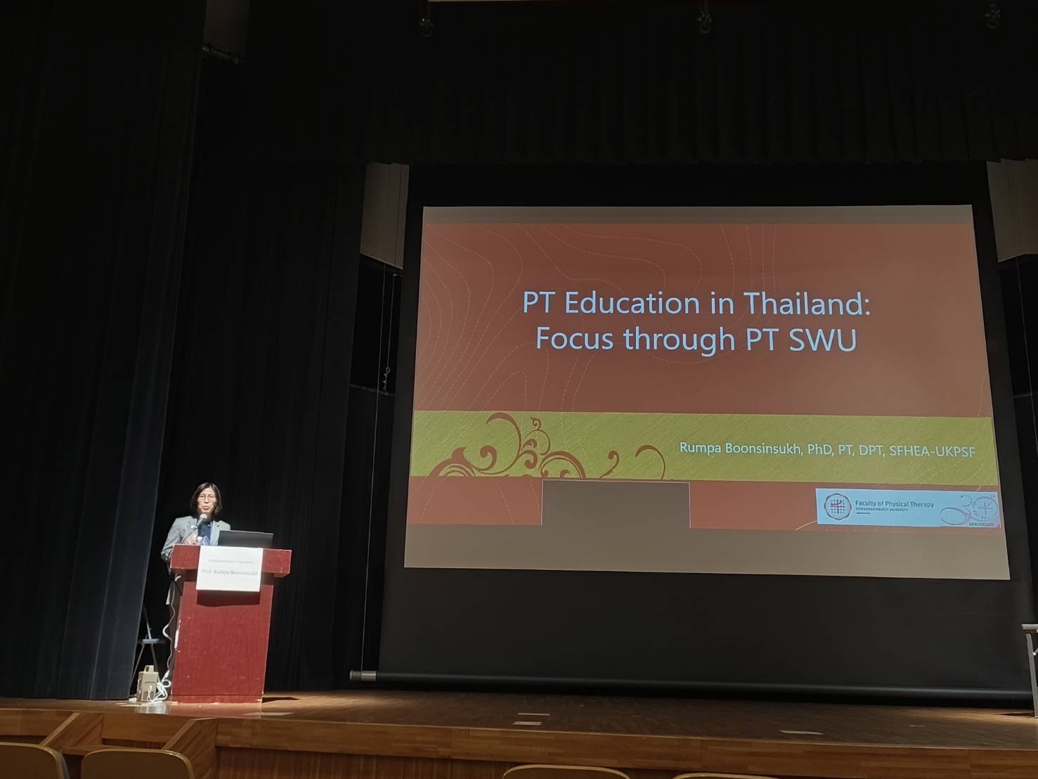 สาขากายภาพบำบัด คณะกายภาพบำบัด ร่วมเป็นเจ้าภาพจัดงานประชุมวิชาการระดับนานาชาติ 1st Asia Physiotherapy Network Conference ระหว่างวันที่ 9-11 มีนาคม 2567 ณ Tokyo Metropolitan University เมืองโตเกียว ประเทศญี่ปุ่น โดย รศ.ดร.รัมภา บุญสินสุข ได้รับเชิญไปบรรยายเรื่อง Physical Therapy Education in Thailand: focus through PT-SWU
