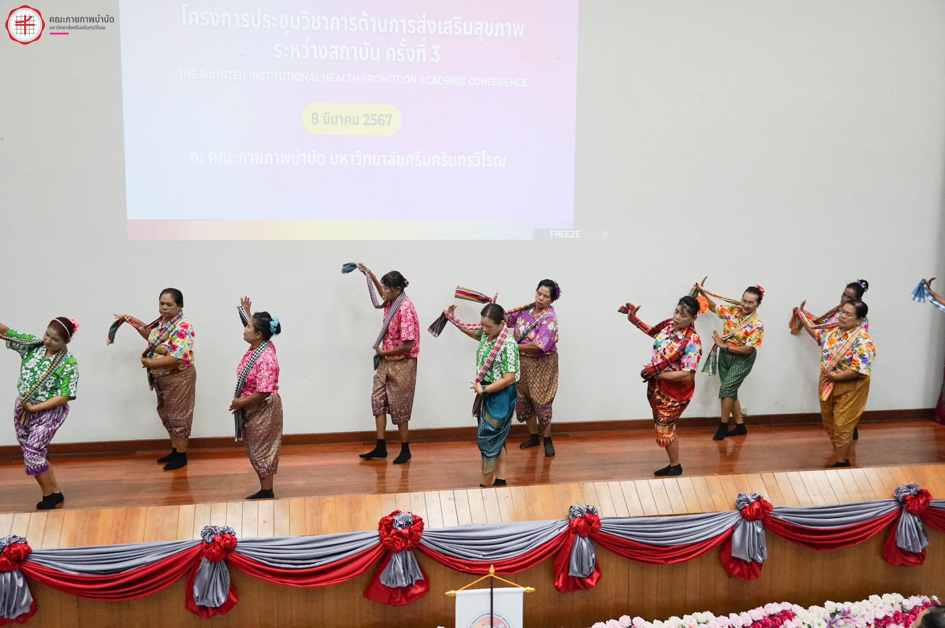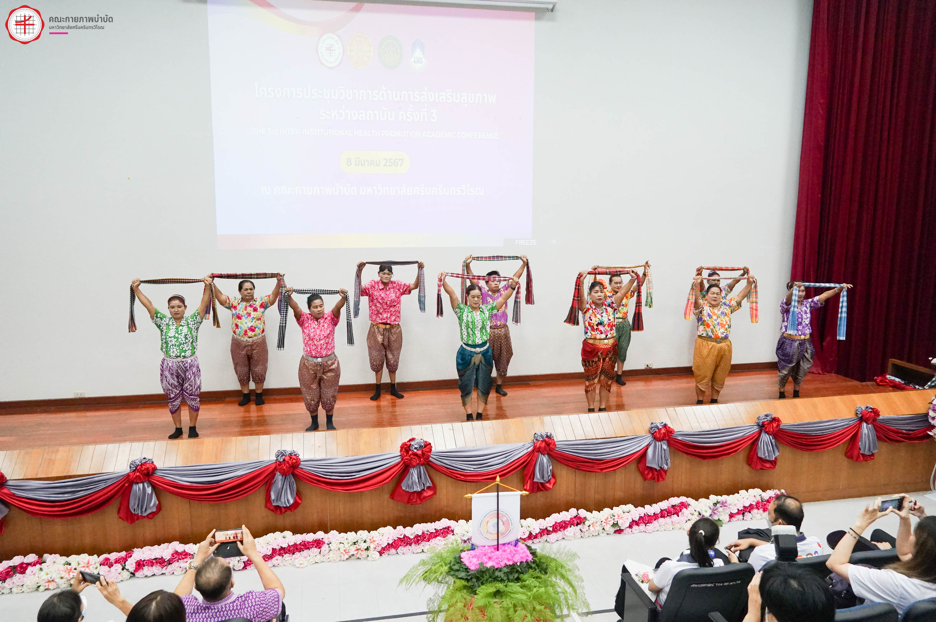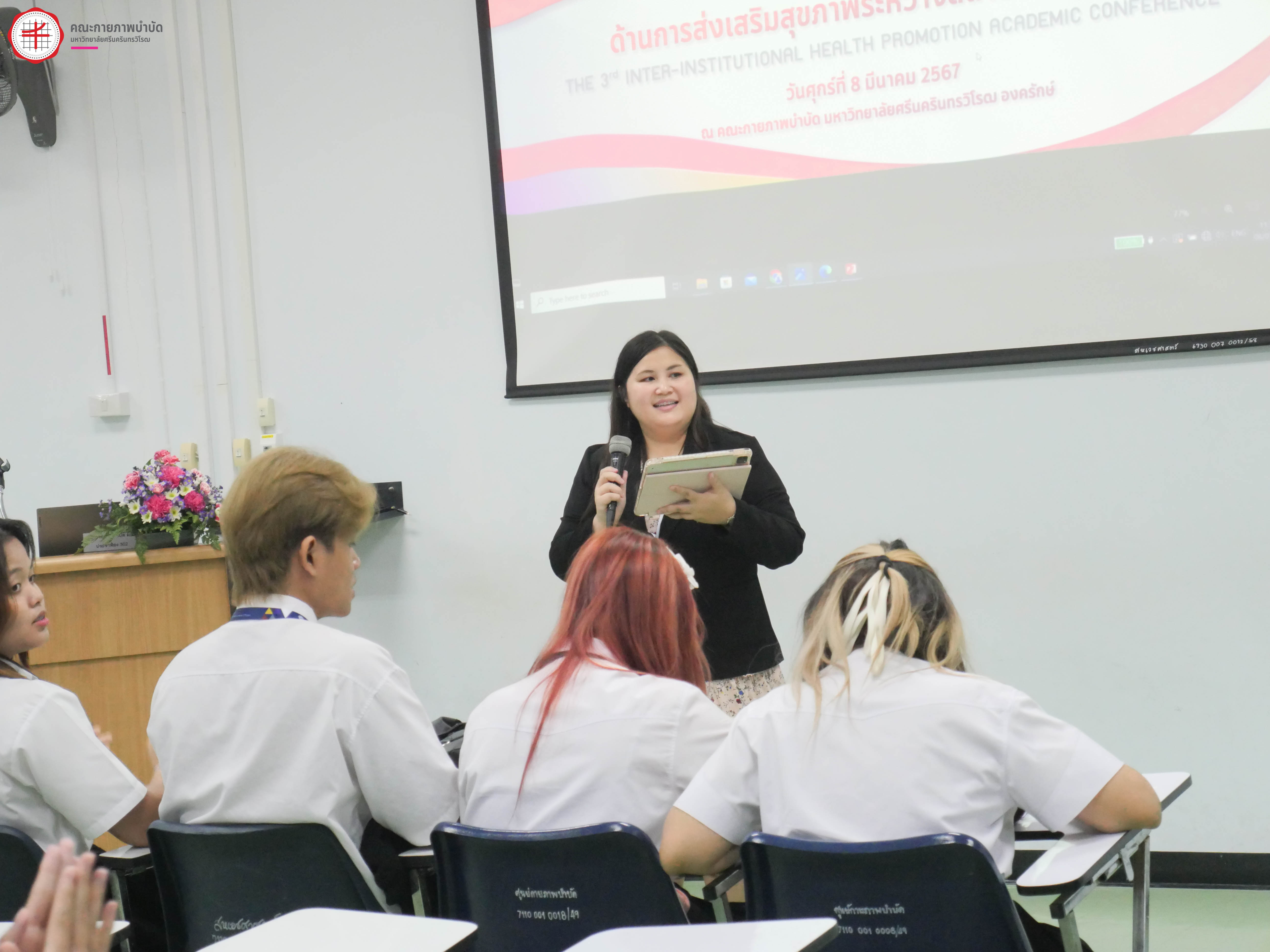 สาขาการส่งเสริมสุขภาพ คณะกายภาพบำบัด มหาวิทยาลัยศรีนครินทรวิโรฒ ร่วมกับสาขาการสร้างเสริมสุขภาพเชิงนวัตกรรม คณะสาธารณสุขศาสตร์ มหาวิทยาลัยธรรมศาสตร์ สาขาวิชาสุขศึกษาและการส่งเสริมสุขภาพ คณะสาธารณสุขศาสตร์ มหาวิทยาลัยบูรพา และสาขาการส่งเสริมสุขภาพ คณะสาธารณสุขศาสตร์ มหาวิทยาลัยพะเยา จัดโครงการประชุมวิชาการโดยมีวัตถุประสงค์เพื่อเปิดโอกาสให้นิสิต-นักศึกษา ได้เผยแพร่ผลงานวิจัย นวัตกรรม แลกเปลี่ยนเรียนรู้ ประสบการณ์วิจัย นวัตกรรมและสร้างเครือข่ายการส่งเสริมสุขภาพระหว่างสถาบันที่ผลิตบัณฑิตด้านการส่งเสริมสุขภาพร่วมกัน ภายใต้โครงการประชุมวิชาการด้านการส่งเสริมสุขภาพระหว่างสถาบัน ครั้งที่ 3 เมื่อวันศุกร์ที่ 8 มีนาคม 2567 ณ คณะกายภาพำบัด มหาวิทยาลัยศรีนครินทรวิโรฒ องครักษ์ โดยมีกิจกรรมบรรยายพิเศษ เรื่อง “นวัตกรรมการส่งเสริมสุขภาพอย่างยั่งยืนตามแนวคิด SDG” โดย ดร. ณัฐพันธุ์ ศุภกา ผู้อำนวยการสำนักพัฒนาภาคีสัมพันธ์และวิเทศสัมพันธ์และรักษาการผู้อำนวยการ สํานักวิชาการและนวัตกรรม สสส. และบรรยายพิเศษ หัวข้อ "วิธีคิดและแนวทางการสร้างสรรค์นวัตกรรมการบริการสุขภาพกับกลุ่มประชากรที่หลากหลาย" โดย ศาสตราจารย์กิตติคุณ ประพันธ์ ภานุภาค ปรึกษาอาวุโส ด้านการวิจัยและนโยบายสาธารณะ สถาบันเพื่อการวิจัยและนวัตกรรมด้านเอชไอวี (IHRI, Institute of HIV Research and Innovation) - ที่ปรึกษา ศูนย์ประสานความร่วมมือระหว่างไทย ออสเตรเลีย เนเธอร์แลนด์เพื่อการศึกษาวิจัยทางคลินิกด้านโรคเอดส์ (HIV-NAT) และกิจกรรมการนำเสนอผลงานของนิสิต-นักศึกษา ในรูปแบบ Oral Presentation และ Poster Presentation