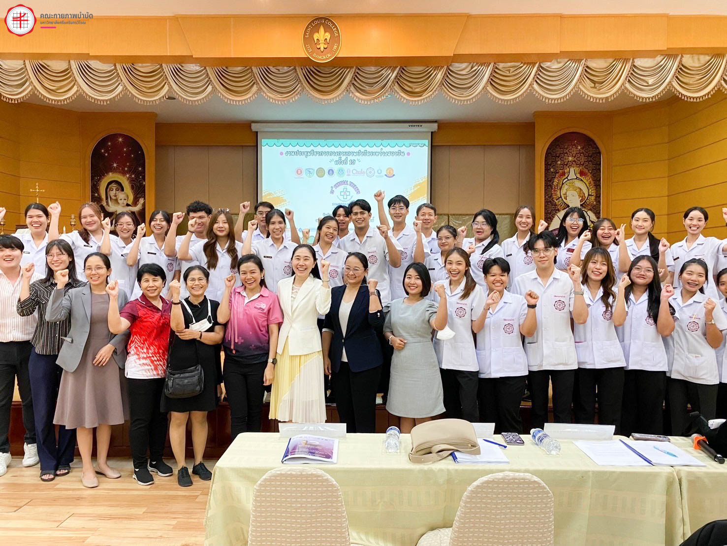 27 พฤษภาคม 2567 นิสิตและอาจารย์ คณะกายภาพบำบัด มศว สาขากายภาพบำบัดชั้นปีที่ 2 และชั้นปีที่ 4 เข้าร่วม ”งานประชุมวิชาการทางกายภาพบำบัดระหว่างสถาบันครั้งที่ 13“ ณ หอประชุมฟรังซิส วิทยาลัยเซนต์หลุยส์ ในการนำเสนอผลงานทางวิชาการในรูปแบบ oral และ poster อีกทั้งนิสิตชั้นปีที่ 4 ได้รับรางวัล popular vote อันดับที่ 1 จากการนำเสนอผลงานทางวิชาการในรูปแบบ poster ซึ่งในการเข้าร่วมงานประชุมวิชาการทางกายภาพบำบัดระหว่างสถาบันในครั้งนี้ทำให้นิสิตได้รับประสบการณ์ เสริมสร้างทักษะการสื่อสารและแลกเปลี่ยนความคิดความรู้กับเพื่อนและอาจารย์ต่างสถาบัน