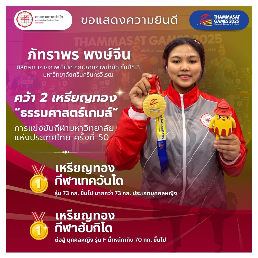 คว้า 2 เหรียญทอง “ธรรมศาสตร์เกมส์” ในการแข่งขันกีฬามหาวิทยาลัย