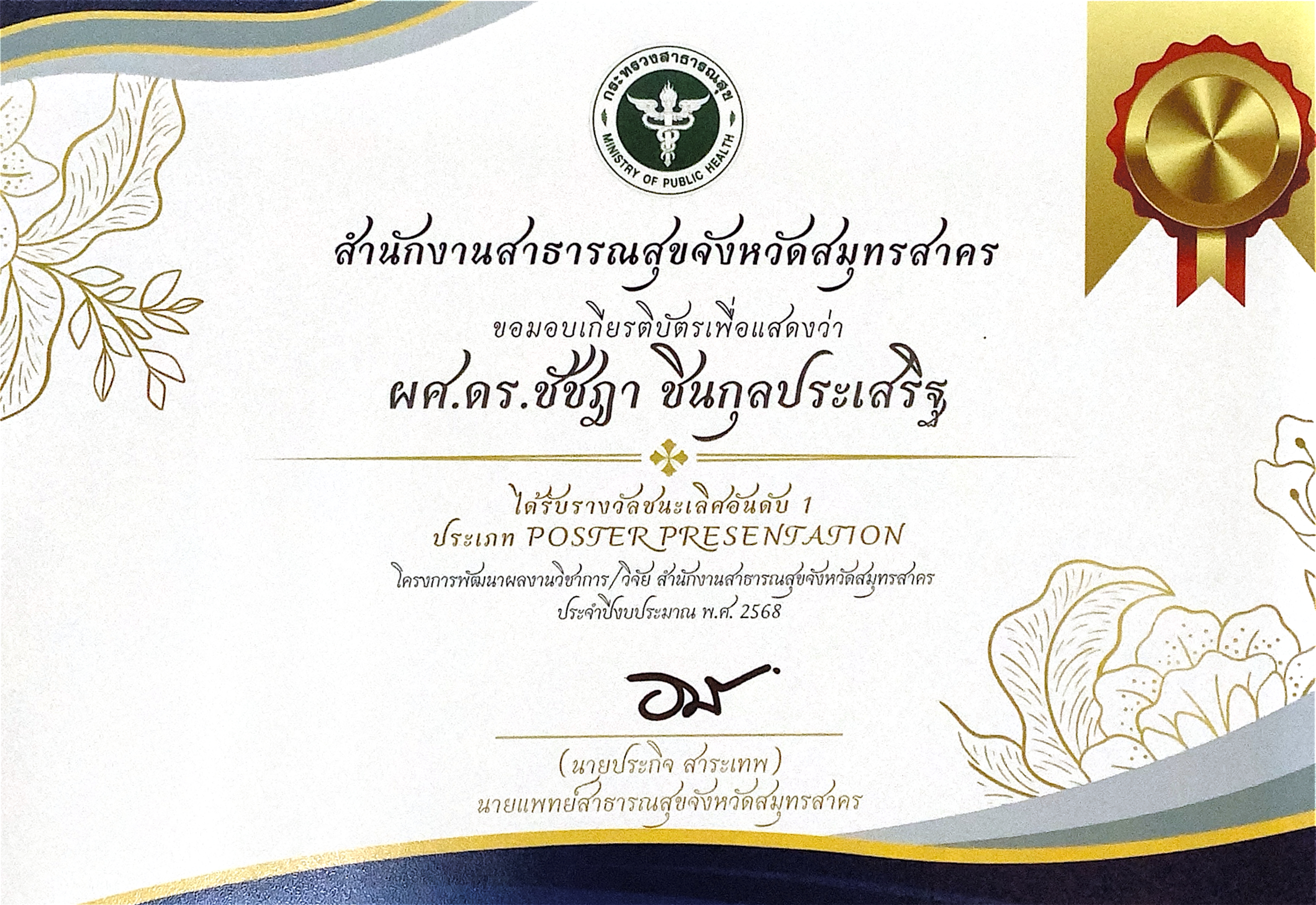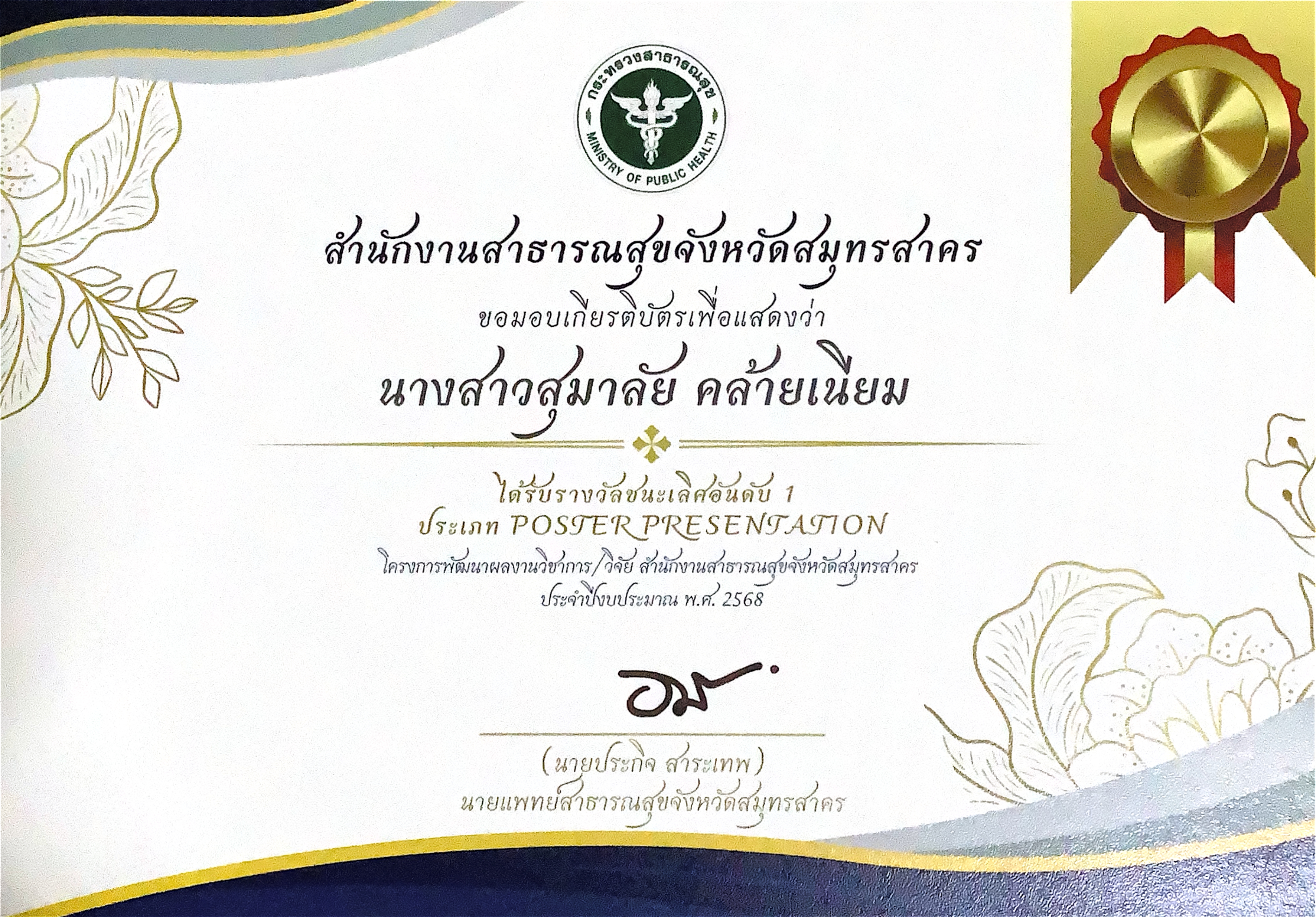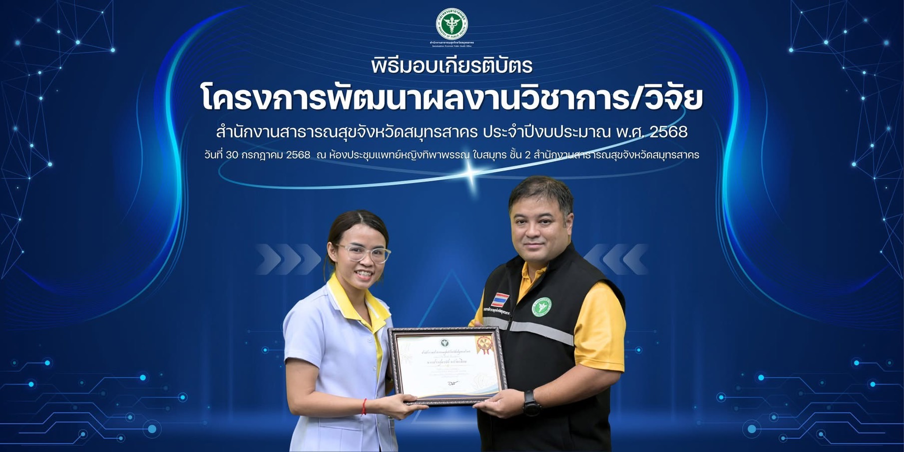 ในโครงการพัฒนาผลงานวิชาการ/งานวิจัย สำนักงานสาธารณสุขจังหวัดสมุทรสาคร ประจำปีงบประมาณ พ.ศ. 2568