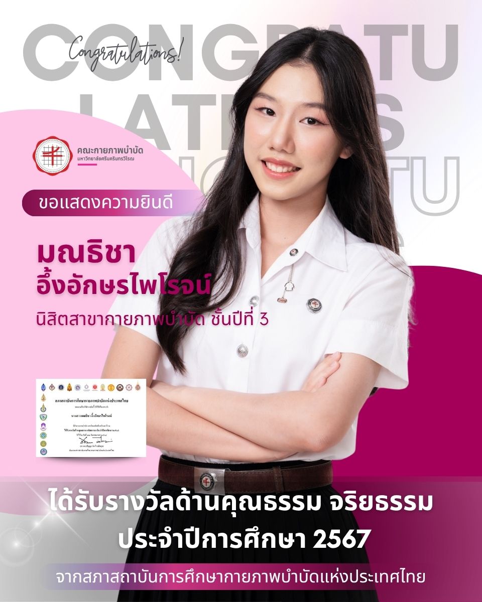 ที่ได้รับ “รางวัลด้านคุณธรรม จริยธรรม ประจำปีการศึกษา 2567” จากสภาสถาบันการศึกษากายภาพบำบัดแห่งประเทศไทย
