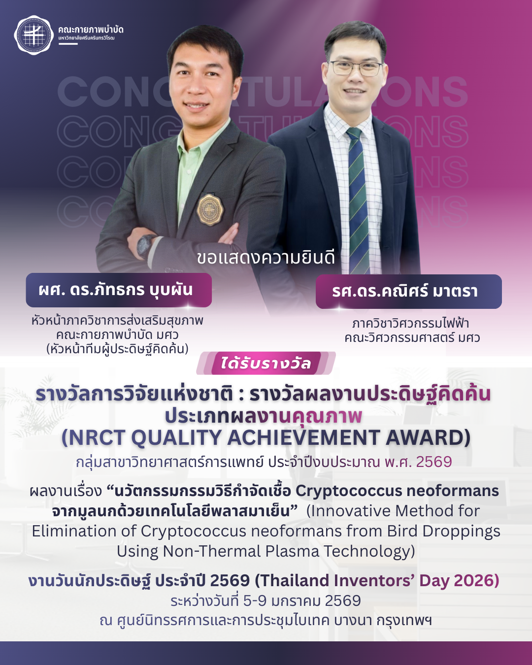 คณะกายภาพบำบัด มศว ขอแสดงความยินดี