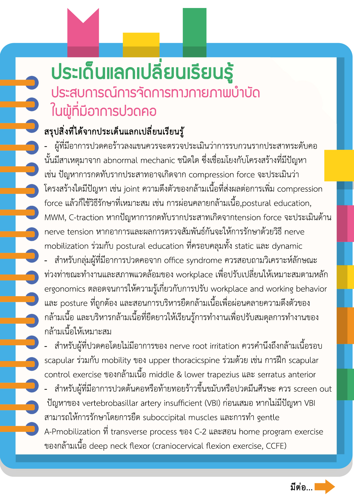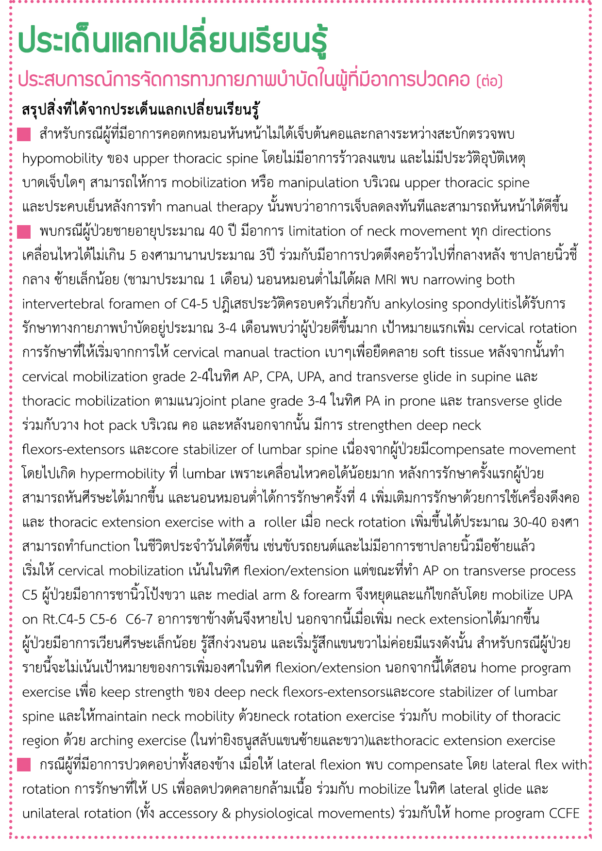 หัวข้อ "Management & Assessment to recovery: cervical disorders" วิทยากรโดย อ.ดร.กนกวรรณ วิชัยวงศ์ , อ.ดร.ชัชฎา ชินกุลประเสริฐ