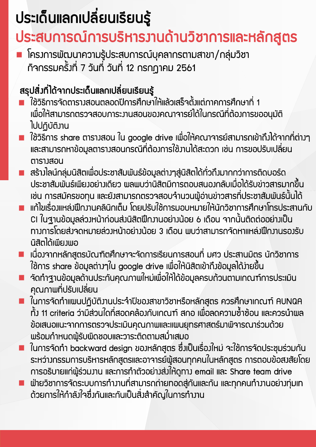 สรุปประเด็น“การแลกเปลี่ยนเรียนรู้”โครงการพัฒนาความรู้ประสบการณ์บุคลากรตามสาขา/กลุ่มวิชากิจกรรม