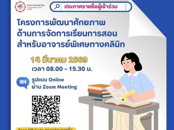 ขอเชิญนักกายภาพบำบัด นักกิจกรรมบำบัด สมาชิก ผู้ประกอบวิชาชีพการสาธารณสุขชุมชน บุคลากรด้านสุขภาพ ที่เป็นอาจารย์พิเศษทางคลินิก (CI)…