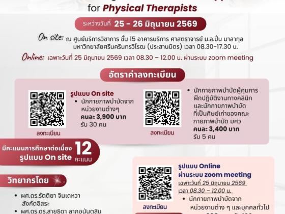 โครงการอบรมเชิงปฏิบัติการ “Hands that Heal: A Practical Training in Neuromuscular Approach for Physical Therapists”ระหว่างวันที่ 25 - 26…