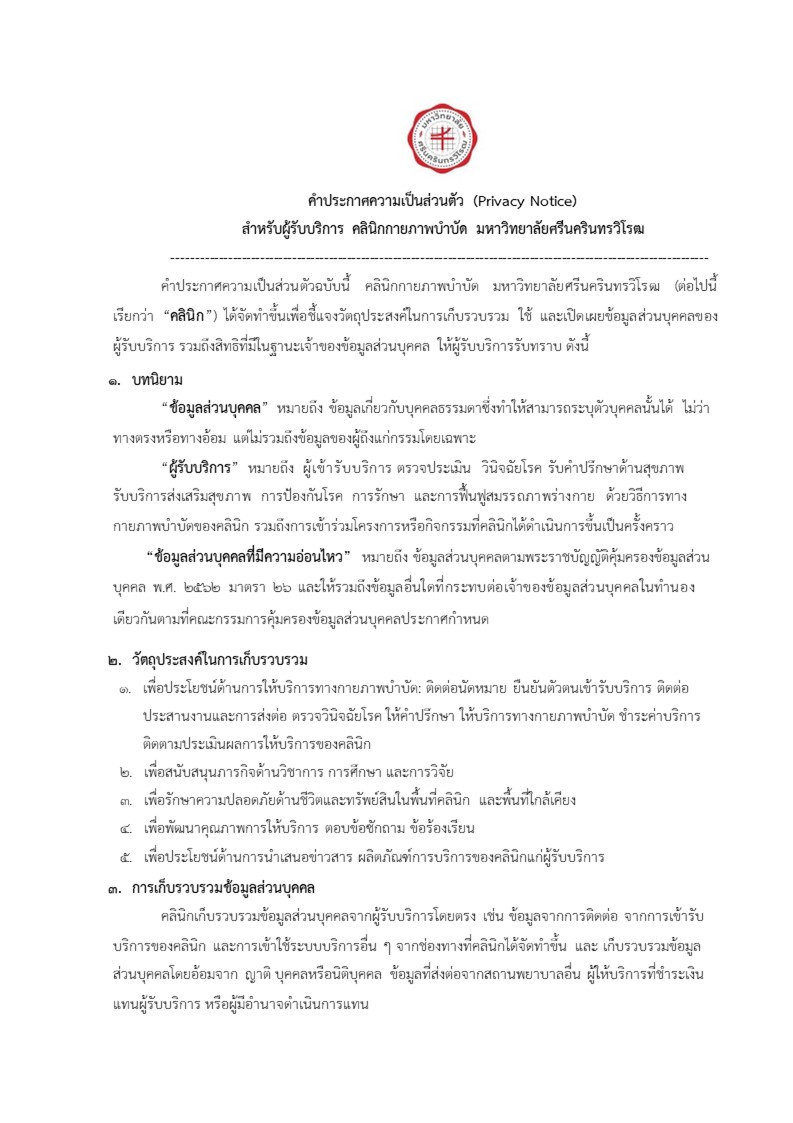 นโยบายความเป็นส่วนตัวคลินิกกายภาพบําบัด