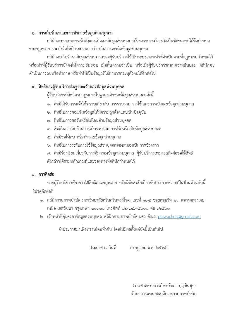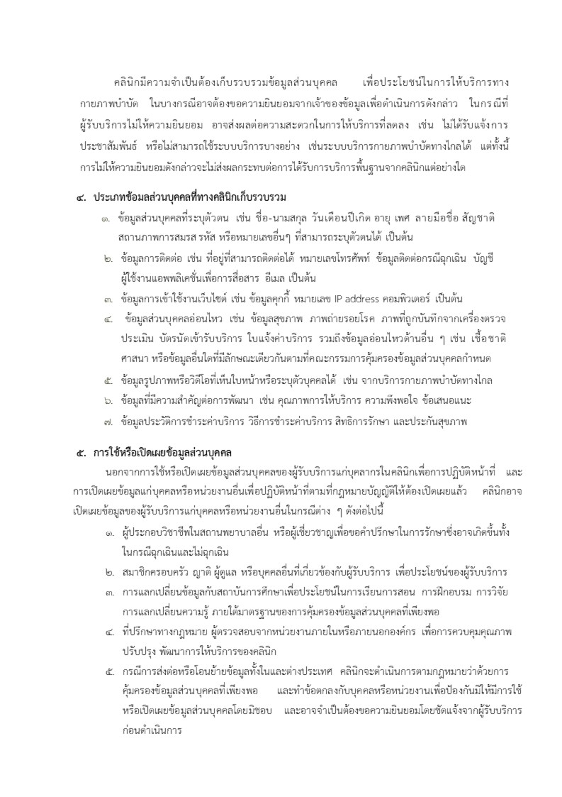 นโยบายการคุ้มครองข้อมูลส่วนบุคคลคลินิคกายภาพบำบัด